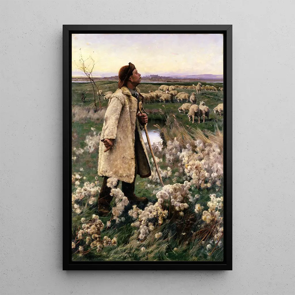 Valget af en kunsttryk af maleriet "Berger" af Ruger Donoho er at vælge et dekorativt stykke, der vil tilføre ro til dit hjem. Uanset om det er i stuen, på kontoret eller i soveværelset, integreres dette lærred harmonisk i forskellige dekorationsstile, fra det klassiske til det moderne. Dets trykkvalitet sikrer en trofast gengivelse af farver og detaljer i det originale værk, samtidig med at det har en tydelig æstetisk appel. Ved at tilføje dette kunsttryk til din samling skaber du et rum, hvor naturen og kunsten mødes, og inviterer til afslapning og eftertanke.