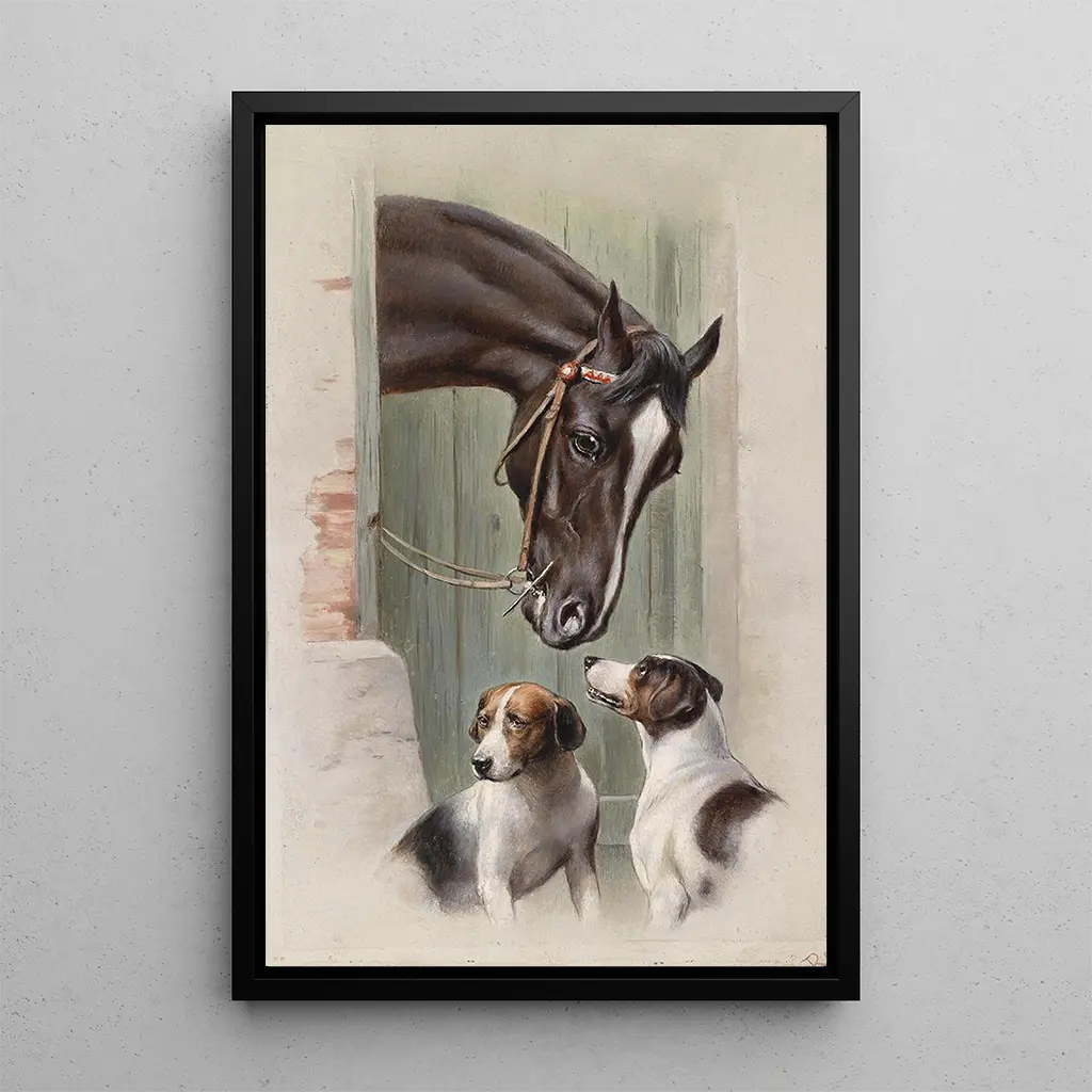 Kunsttrykket af Besøg på stallen af Carl Reichert indfanger et øjeblik af blidhed og samhørighed mellem menneske og dyr. I denne intime scene nærmer en ung dreng sig en hest, hvilket illustrerer den tillidsfulde og kærlige relation, der kan eksistere mellem de to. De varme farver og lyslege skaber en fredelig atmosfære, mens Reicherts realistiske teknik fremhæver detaljerne i dyrene og deres omgivelser. Dette lærred fremkalder den enkle skønhed i delte øjeblikke og inviterer til en beroligende eftertanke.