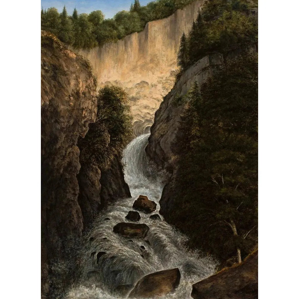 Den kunsttryk med titlen Cascade de montagne à Saint-Gervais, skabt af Cyprian Lachnicki, tager os med på en rejse gennem et betagende alpin landskab. De levende farver og kontrasterne mellem himmelblå og grønne træer skaber en forfriskende atmosfære. Lachnicki anvender en olieteknik, der bringer hver dråbe vand i vandfaldet til live, hvilket gør værket næsten håndgribeligt. Den dynamiske komposition, med det bevægende vandfald, fremhæver naturens kraft og ro, og inviterer betragteren til at føle den friske bjergluft.