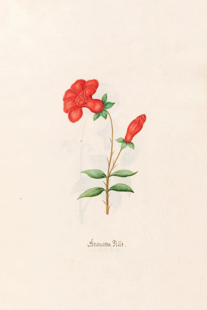 Maleri af granatæbleblomst - Magdalena Rosina Funck | Kunsttryk