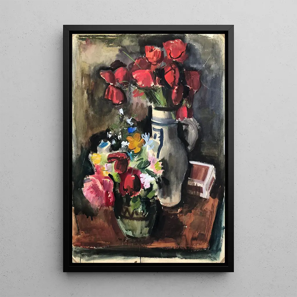 Bouquet af blomster på bordet : en fejring af naturen indendørs. Kunsttrykket "Bouquet af blomster på bordet" transporterer os til et øjeblik af ro og naturlig skønhed. Den blomsterlige komposition, rig på farver og teksturer, fremkalder en perfekt harmoni mellem de forskellige blomsterarter. De livlige nuancer, fra dybe røde til strålende gule, skaber en glad og livlig atmosfære. Otto Geigenberger bruger en oljemaleriteknik, der fanger lyset og skyggerne, hvilket giver liv til hver enkelt kronblad og blad. Dette kunsttryk inviterer til at værdsætte naturens flygtige skønhed, samtidig med at det tilfører et strejf af friskhed til vores hverdag. Otto Geigenberger : en kunstner med hjertet i impressionismen. Otto Geigenberger, aktiv i begyndelsen af det 20. århundrede, er ofte forbundet med impressionistbevægelsen, der prioriterer at fange lys og farver. Påvirket af mestre som Monet og Renoir, fokuserer han på at skildre naturen og dagligdagsscener. Hans værker, selvom mindre kendte, vidner om en særlig følsomhed over for skønheden i de enkle ting. Ved at integrere elementer af naturen i sine kompositioner formår Geigenberger at skabe beroligende og evocative atmosfærer, hvilket markerer hans aftryk i kunstens historie. En dekorativ genstand med mange fordele. Kunsttrykket af "Bouquet af blomster på bordet" er et ideelt dekorativt stykke til at forskønne dit hjem, uanset om det er i en stue, spisestue eller et kontor. Det trykteknikkens kvalitet sikrer en enestående trofasthed over for farver og detaljer i det originale værk, hvilket tilfører et strejf af natur til dit rum. Dette kunsttryk, med sin ubestridelige æstetiske tiltrækningskraft, passer perfekt ind i forskellige dekorationsstile, fra det klassiske til det moderne. Ved at vælge dette lærred giver du dit miljø en note af friskhed og vitalitet, samtidig med at du fejrer blomsterverdenens skønhed.