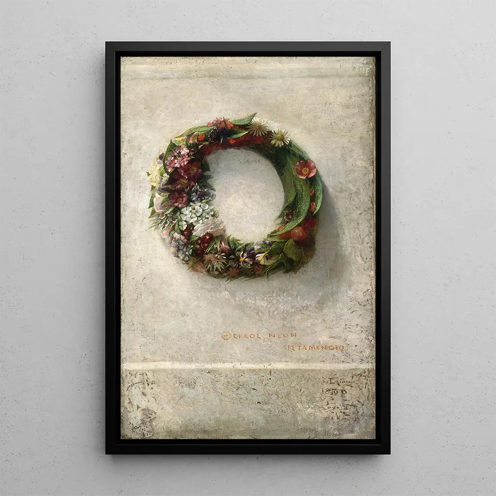 Den kunsttryk af John La Farge's Couronne de fleurs fremkalder en delikat blomsteragtig finesse, der overskrider tidens grænser. De livlige farver på kronbladene, fra strålende roser til rene hvide nuancer, flettes ind i en subtil harmoni. Teknikken med farvet glas, mestret af La Farge, giver dette værk en unik lysstyrke, der leger med det naturlige lys for at skabe en næsten magisk atmosfære. Hvert blomsterarrangement synes at fortælle en historie, en fejring af livet og naturen, og inviterer betragteren til en fredelig og meditativ eftertanke.