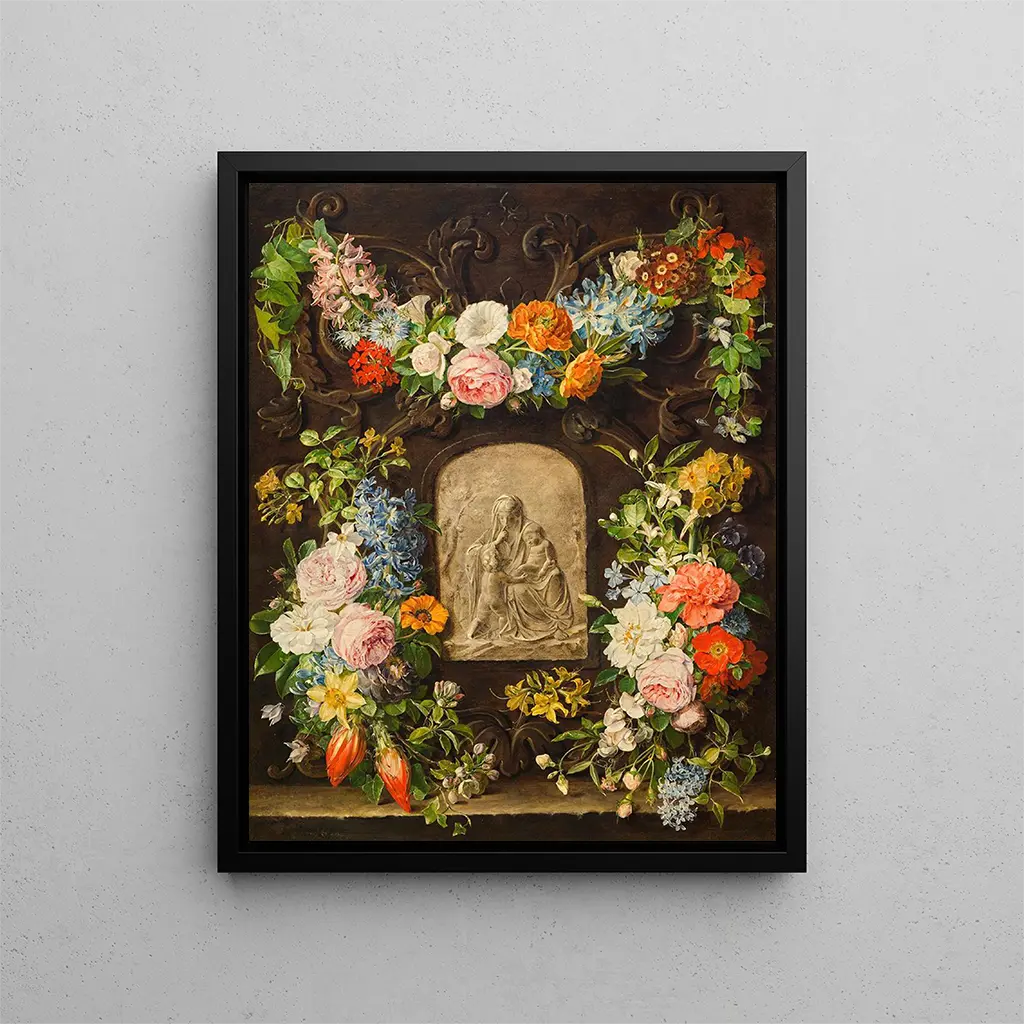 Blomsterkrans med relieff af Madonnaen - Pauline Koudelka-Schmerling