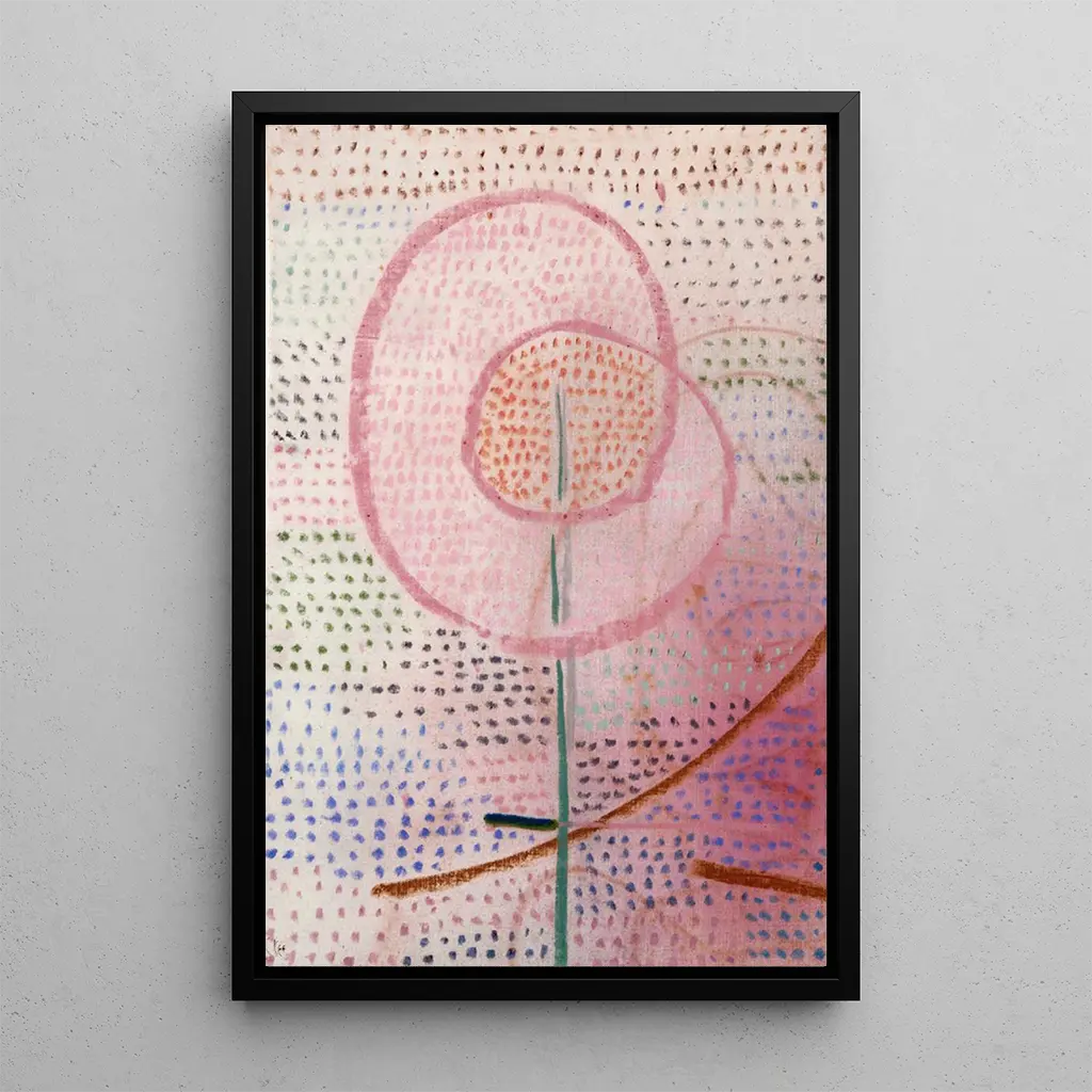 I "Floraison" inviterer Paul Klee os til at dykke ned i et levende univers, hvor farverne eksploderer og blander sig med poetisk lethed. Dette værk, både abstrakt og figurativt, fremkalder en natur i fuld boblende aktivitet. De organiske former, næsten barnlige, udfolder sig på lærredet og skaber en dialog mellem drøm og virkelighed. Pastelfarver, kombineret med mere livlige nuancer, indgyder en glad og legende atmosfære, typisk for Klees stil. Hvert detalje synes at danse, og afslører en blomstring, ikke kun af naturen, men også af fantasien.