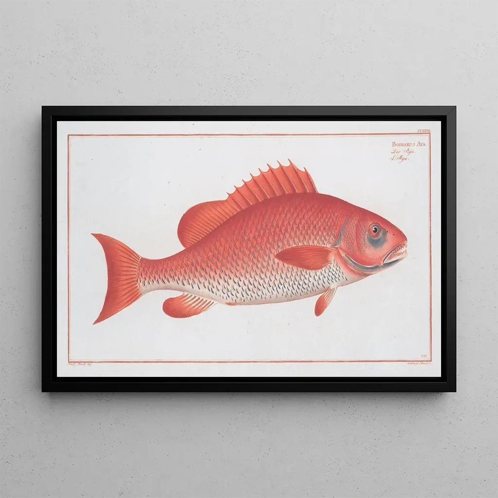 Kunsttrykket af Bodianus Aya er et dekorativt stykke, der vil tilføre et strejf af eksotisme til dit hjem. Uanset om det er i stuen, på et kontor eller i et værelse, vil dette lærred kunne fange opmærksomheden og vække forundring. Dets trykkvalitet sikrer en trofast gengivelse af farver og detaljer i det originale værk, hvilket gør dette kunsttryk til et ideelt valg for naturelskere og kunstentusiaster. Ved at integrere dette maleri i din indretning skaber du et rum, der hylder havets skønhed og Marcus Elieser Blochs kunstneriske arv.