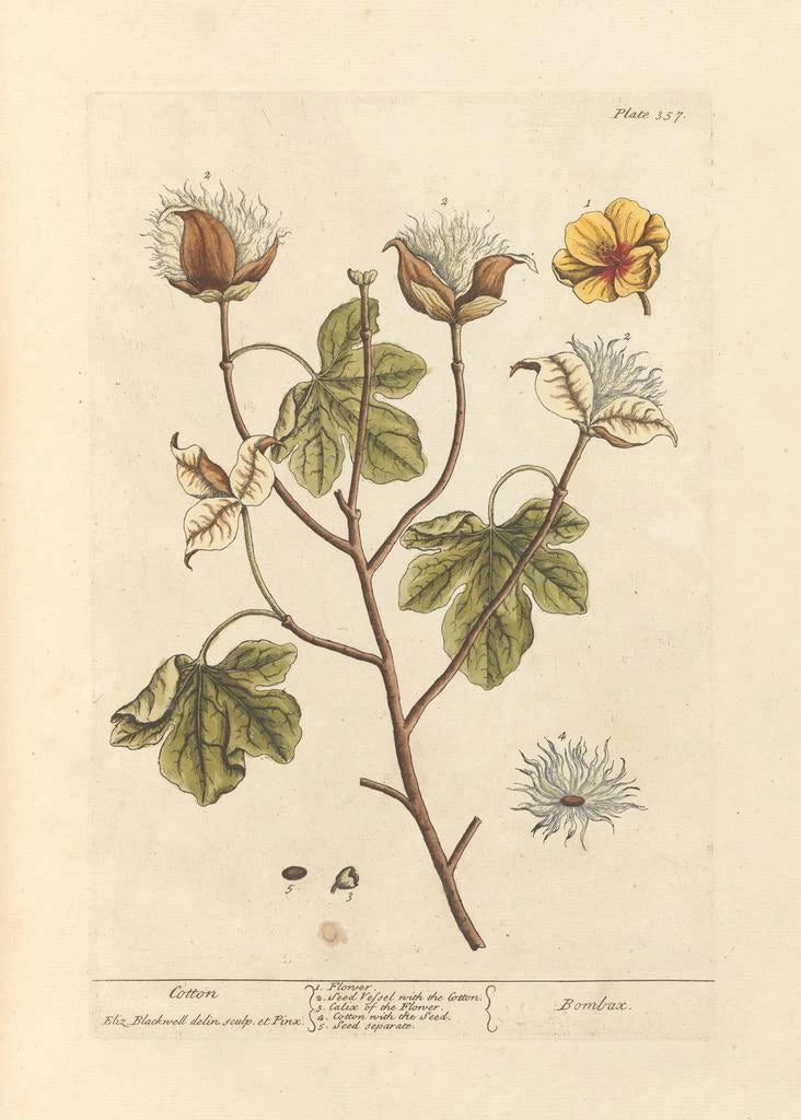 Elizabeth Blackwell, født i 1707, er anerkendt som en af de første kvinder, der dedikerede sig til botanisk illustration. Hendes værk, "A Curious Herbal", blev udgivet i 1737 og havde en betydelig indflydelse på botanikkens udvikling på den tid. Inspireret af videnskabelige opdagelser og kulturelle udvekslinger fra perioden, formåede Blackwell at forene kunst og videnskab for at hylde floraen. "Coton" er et perfekt eksempel på hendes stil, der kombinerer videnskabelig præcision med kunstnerisk følsomhed og vidner om den stigende rolle for kvinder inden for videnskaberne.