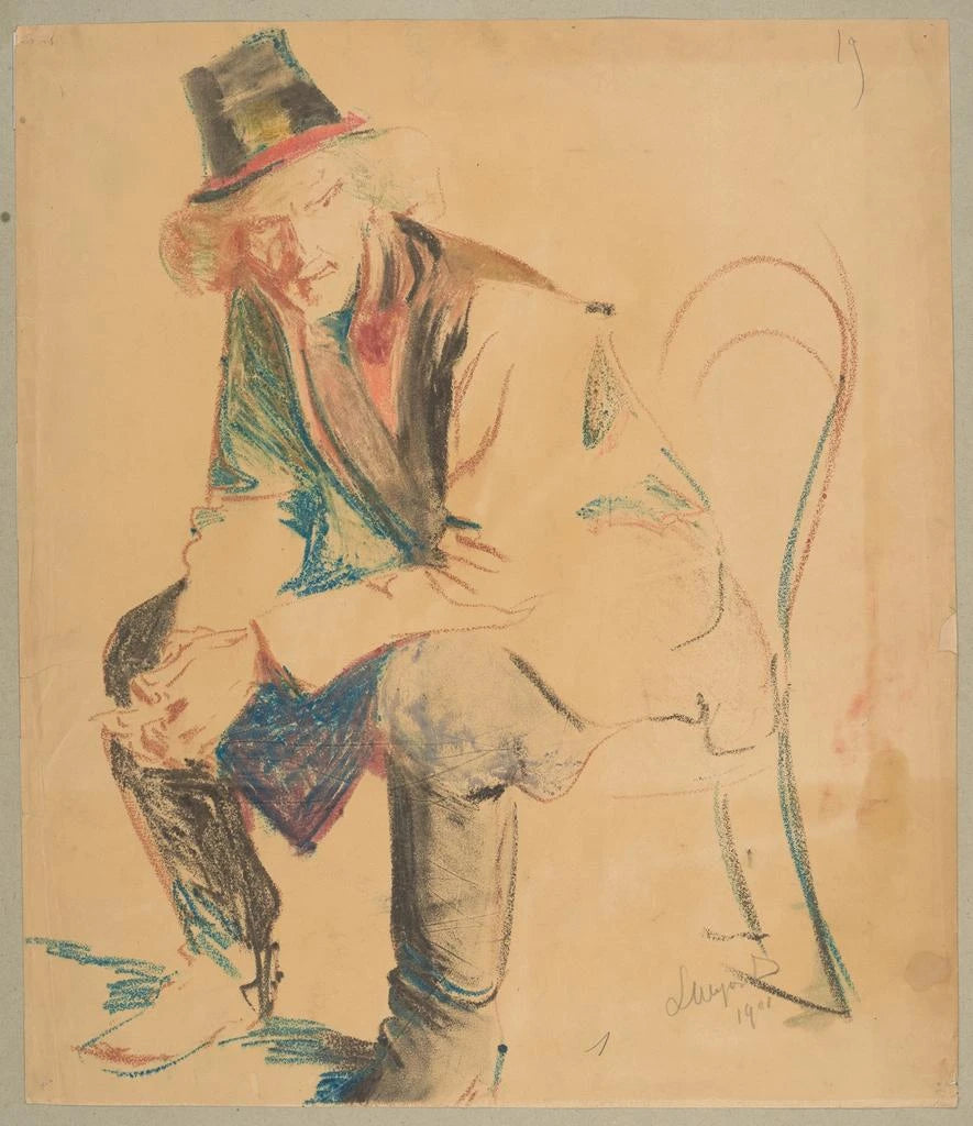 Krakkønske bonde sidder på en stol - Leon Wyczółkowski