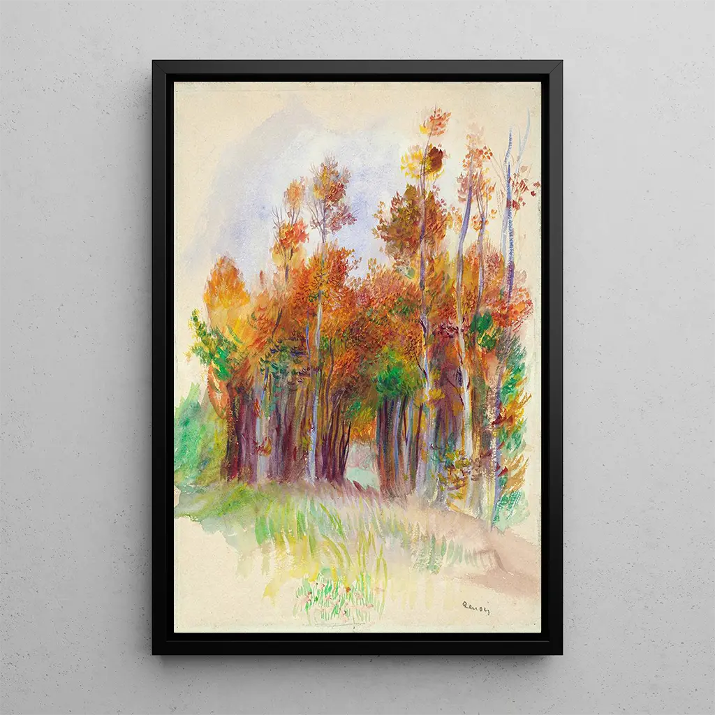 I "Bosquet d'arbres" tager Pierre-Auguste Renoir os med ind i en grøn oase, hvor lyset leger med bladene. Nuancer af grøn, flettet med gyldne strejf, skaber en fredelig og rolig atmosfære. Kompositionen, rig på detaljer, inviterer os til at vandre gennem dette landskab, hvor hvert træ synes at fortælle en historie. Renoirs flydende og vibrerende penselstrøg giver en håndgribelig livlighed til scenen, hvilket skaber en harmoni mellem naturen og betragterens øje. Dette kunsttryk, en sand hyldest til skønheden i naturlige omgivelser, transporterer os til et øjeblik af eftertanke.