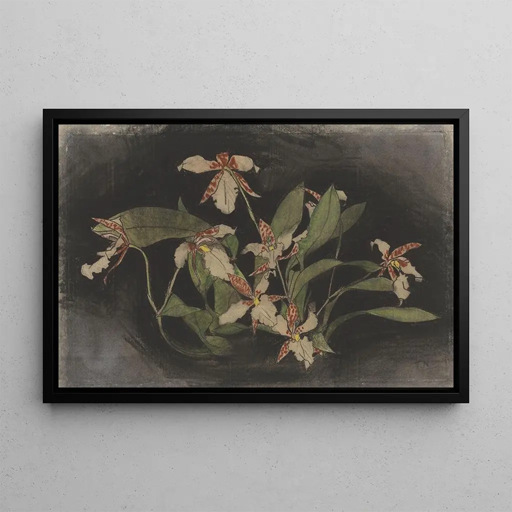 La reproduction de la toile "Branche d'orchidée en fleurs" de Theo Nieuwenhuis évoque une atmosphère de sérénité et de beauté naturelle. Les nuances douces de rose et de blanc se mêlent subtilement, tandis que les touches de vert apportent une profondeur à la composition. La technique de Nieuwenhuis, qui combine le réalisme avec une approche presque impressionniste, permet aux fleurs de sembler vibrantes et vivantes. Chaque pétale est délicatement rendu, invitant le spectateur à s'immerger dans ce monde floral. L'œuvre, par son élégance et sa légèreté, évoque une invitation à la contemplation et à l'appréciation de la nature.