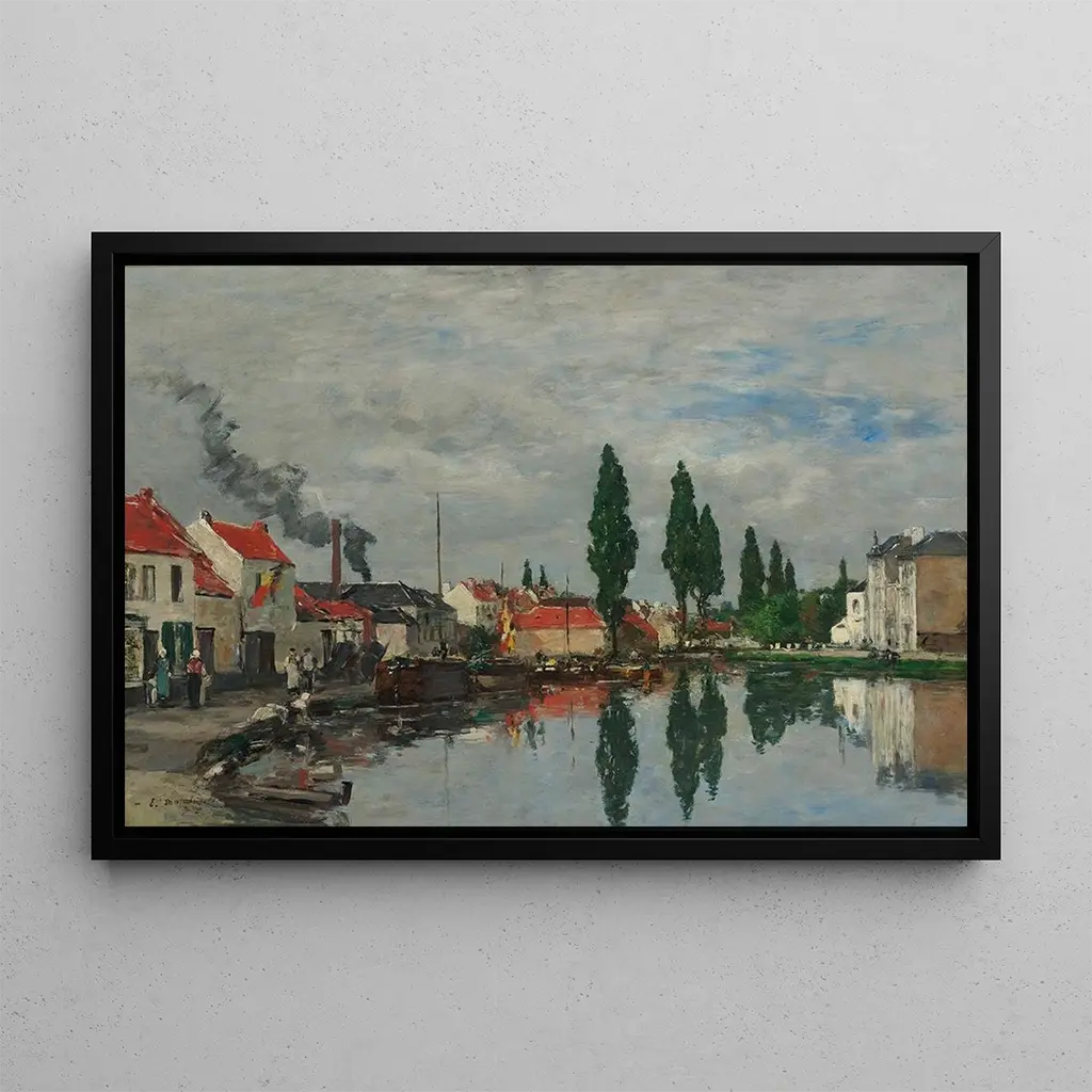 Kunsttrykket Bruxelles Le Canal de Louvain af Eugène Boudin fremkalder en rolig atmosfære, hvor den funklende vand i kanalen reflekterer den bløde himmel. Nuancer af blå og grøn blander sig harmonisk, hvilket skaber en komposition, der inviterer til eftertanke. De fortøjede både tilføjer et strejf af liv til denne fredelige scene, mens træerne langs kanalen giver en fornemmelse af friskhed. Boudins teknik, kendetegnet ved hurtige og flydende penselstrøg, giver værket en følelse af bevægelse og lethed, hvilket transporterer betragteren til et ophængt øjeblik.