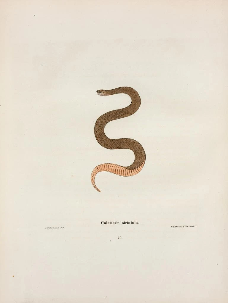 Opdag den elegante og unikke Calamaria elapsoidea, en slangeart opdaget af den berømte herpetolog John Edwards Holbrook. Denne fascinerende krybdyr er kendt for sin slanke krop og smukke mønster, hvilket gør den til et perfekt valg for samlere og naturelskere.