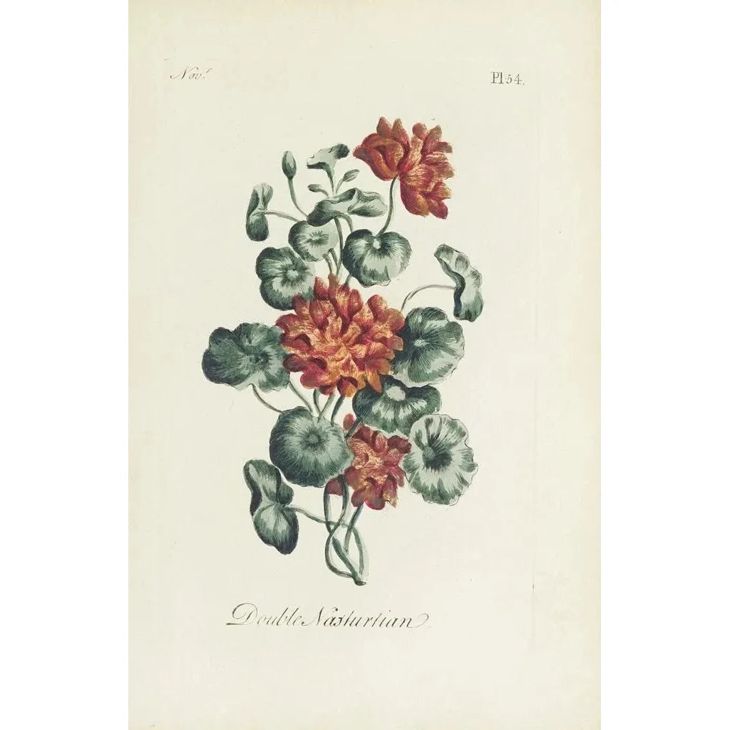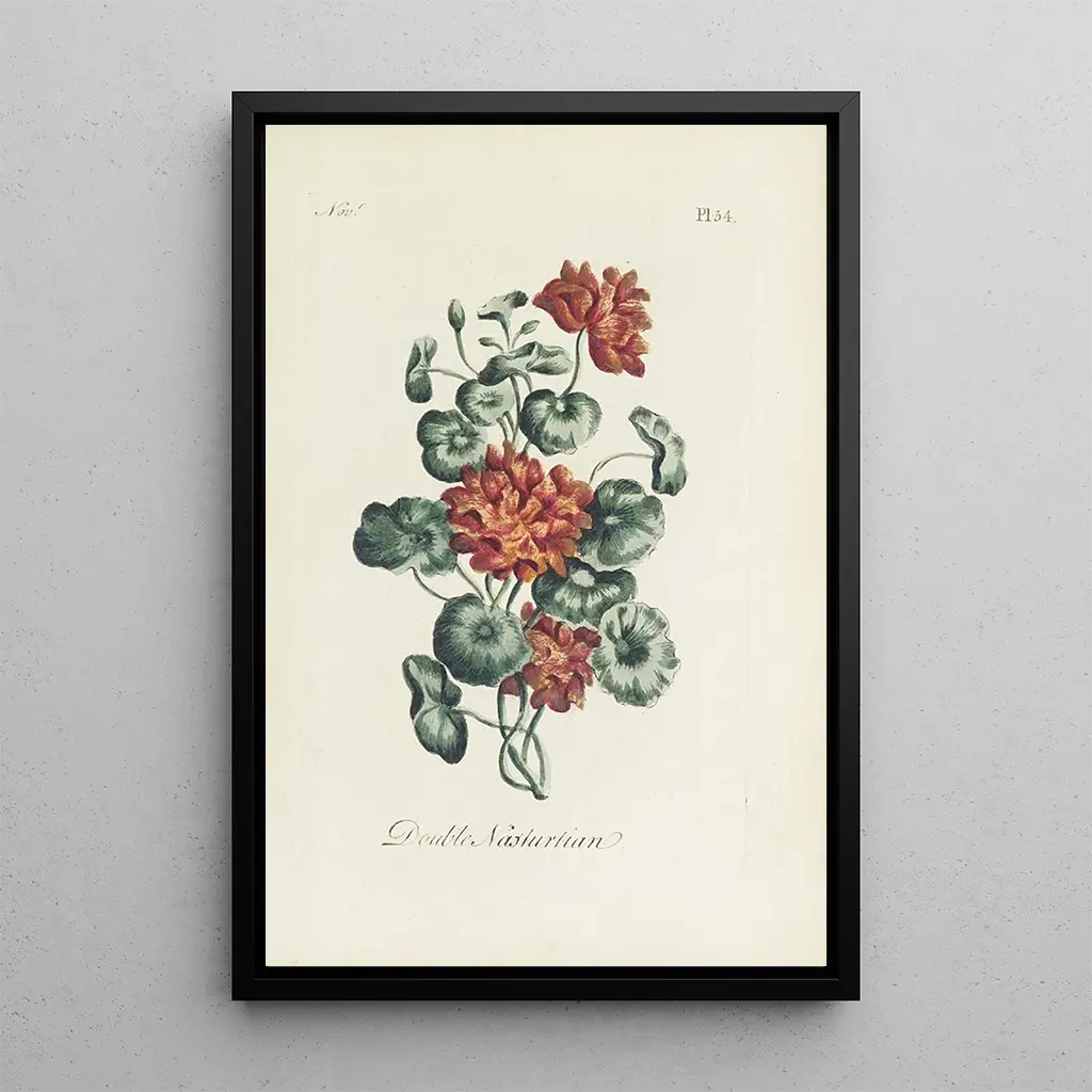 Den kunsttryk af den dobbelt-kapucine fordyber os i en livlig verden, hvor varme og strålende nuancer flettes sammen. Kronbladene, i en flammende orange, synes at danse under lyset, mens de grønne blade tilføjer et strejf af friskhed til denne blomsterkomposition. Den graveringsteknik, der er anvendt af Carington Bowles, gør det muligt at gengive hver detalje med bemærkelsesværdig præcision, hvilket skaber en atmosfære, der både er glædesfyldt og beroligende. Dette værk inviterer til eftertanke og fremkalder blomstens flygtige skønhed samt dens evne til at oplyse vores opholdsrum.