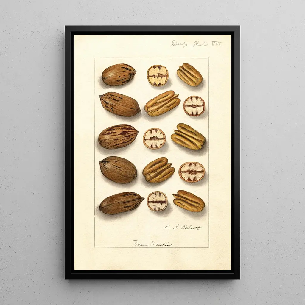 Kunsttrykket af Carya illinoinensis er et ideelt valg til at forskønne dit hjem, uanset om det er i stuen, på kontoret eller i soveværelset. Dets trykkvalitet sikrer en bemærkelsesværdig trofasthed over for farver og detaljer i det originale værk, hvilket tilføjer et strejf af elegance og ro til din indretning. Dette lærred, en ægte hyldest til naturen, tiltrækker opmærksomhed og skaber samtaler, samtidig med at det skaber en varm og indbydende atmosfære. Ved at vælge dette lærred vælger du et dekorativt element, der kombinerer æstetik med respekt for miljøet og beriger dit opholdsrum.