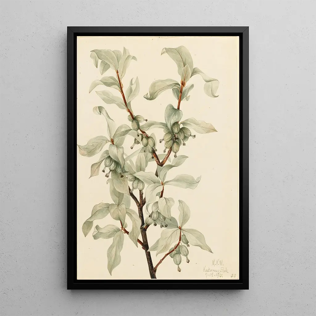Kunsttrykket af Chalef argenté Elaeagnus commutata af Mary Vaux Walcott fanger essensen af den naturlige skønhed. Dette maleri, rigt på detaljer, viser sølvfarvede blade og gyldne bær, der glitrer under lyset. Den delikate akvarelteknik giver kunstneren mulighed for at lege med nuancer og gennemsigtigheder, hvilket skaber en atmosfære, der både er beroligende og forfriskende. Den harmoniske komposition inviterer betragteren til at dykke ned i en verden, hvor floraen blomstrer yndefuldt, og vækker mindelser om roen i vilde landskaber.