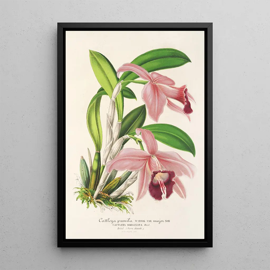 Kunsttrykket af Cattleya pumila er et perfekt valg til at berige din indretning. Uanset om det er i stuen, på kontoret eller i soveværelset, vil dette lærred tilføre et strejf af friskhed og elegance. Dets trykkvalitet sikrer en trofast gengivelse af farver og detaljer i det originale værk, hvilket hylder blomstens delikatesse. Ved at tilføje dette værk til dit rum skaber du en rolig og raffineret atmosfære, ideel for naturelskere og kunstentusiaster.