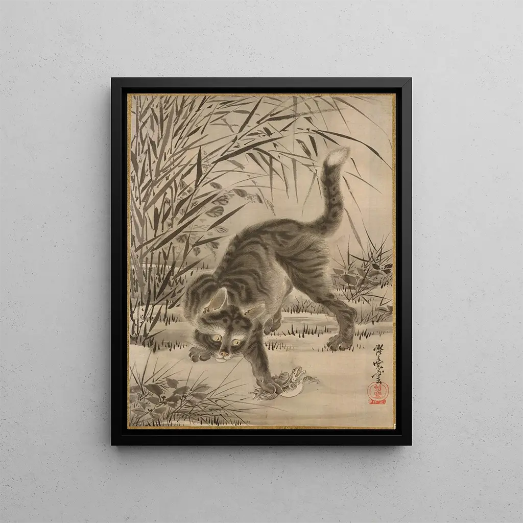 Chat, der fanger en frø - Kawanabe Kyōsai