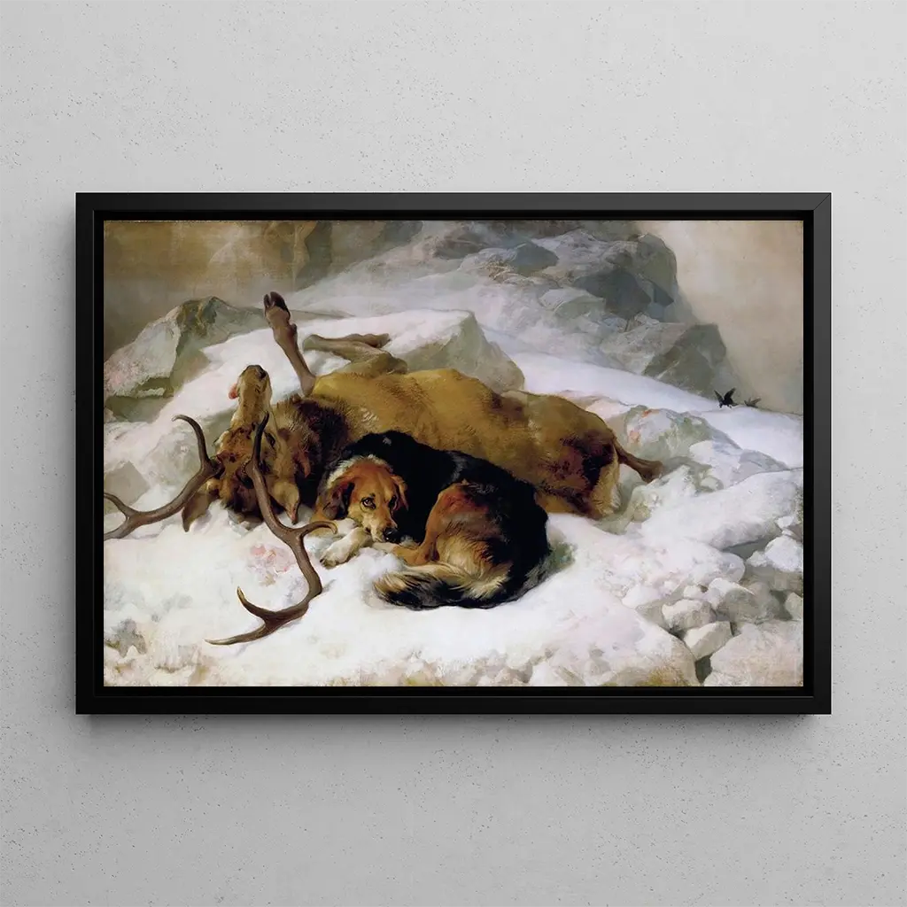 Kunsttrykket af Chevy, udført af Sir Edwin Henry Landseer, indfanger selve essensen af hundens adel. I dette værk tiltrækker hundens skarpe blik, både stolt og beskyttende, straks opmærksomhed. De varme og jordnære farver, kombineret med nuancer af brunt og sort, skaber en atmosfære, der er både intim og vild. Landseers teknik, der blander realisme og romantik, giver liv til hver detalje, fra pelsens hår til reflekserne i øjnene. Dette lærred fremkalder en dyb forbindelse mellem menneske og dyr og inviterer betragteren til at beundre skønheden og loyaliteten hos menneskets bedste ven.