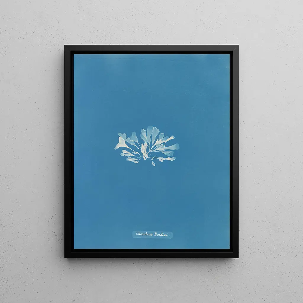 L'œuvre "Chondrus brodii" af Anna Atkins er en fascinerende illustration af krydsfeltet mellem kunst og videnskab, et ikonisk værk, der overskrider tidens grænser. Skabt i det 19. århundrede, skiller dette værk sig ud gennem sin nyskabende tilgang til botanisk fotografi, hvor den delikate skønhed af alger fanges gennem cyanotypi-processen. Anna Atkins, en pioner inden for dette felt, formåede at forene videnskabelig præcision med kunstnerisk følsomhed, hvilket giver et unikt syn på naturen. Denne kunsttryk af "Chondrus brodii" transporterer seeren til en verden, hvor videnskabelig nøjagtighed møder æstetik, og afslører majestæten i de organiske former.