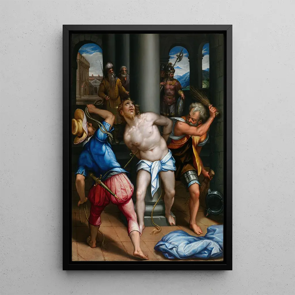 Denys Calvaert, actif au XVIe siècle, est un artiste belge qui a su marier les influences italiennes et flamandes dans son œuvre. Formé à Bologne, il a été marqué par les grands maîtres de la Renaissance, ce qui se reflète dans sa technique raffinée et son sens de la narration visuelle. Calvaert est souvent associé à la période baroque, un style qui privilégie l'émotion et le mouvement. Son travail, bien que moins connu que celui de ses contemporains, a laissé une empreinte significative dans l'histoire de l'art, notamment par sa capacité à capturer des moments de tension dramatique, comme en témoigne cette kunsttryk de Christ à la colonne.
