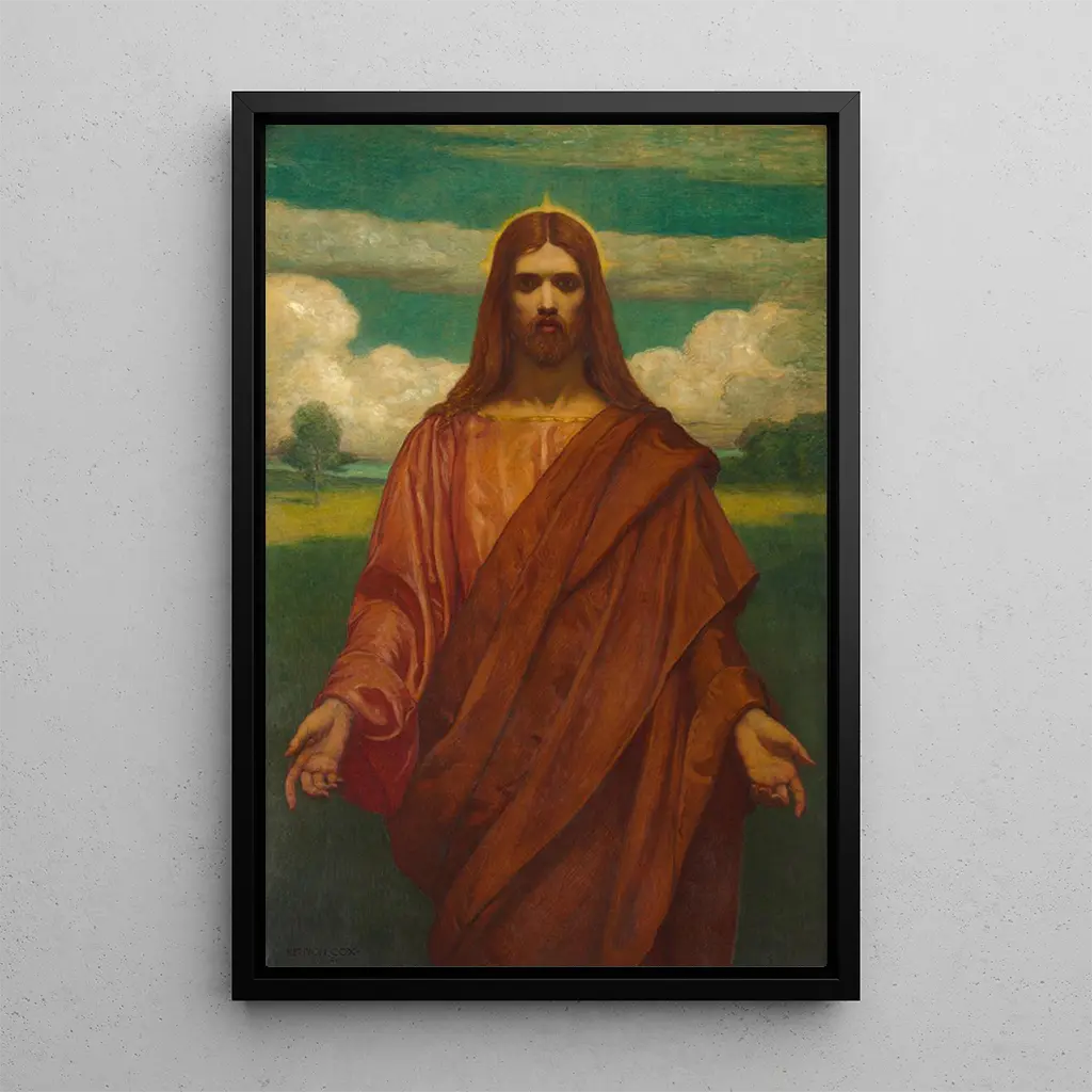 I dette værk giver Kenyon Cox os en slående fremstilling af Christ, badet i et blødt og varmt lys. Kompositionen skiller sig ud med rige og harmoniske farver, hvor de gyldne nuancer og blå toner smelter sammen for at skabe en både fredelig og majestætisk atmosfære. Cox's teknik, der kombinerer realisme med en smule idealisme, gør det muligt at føle en dyb spiritualitet, der udstråler fra den centrale figur. Hvert detalje, fra ansigtets træk til klædningsfoldninger, er omhyggeligt udarbejdet og inviterer betragteren til en meditativ refleksion over denne hellige scene.