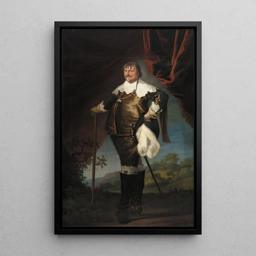 Karel van Mander III, aktiv i det 17. århundrede, er en hollandsk kunstner kendt for sine portrætter af historiske og kongelige figurer. Opvokset i en rig kunstnerisk tradition, er han blevet påvirket af tidens store mestre, især de flamske kunstnere. Hans arbejde skiller sig ud ved sin omhyggelige opmærksomhed på detaljer og evnen til at formidle personligheden hos sine motiver. Ved at male Christian IV har van Mander ikke blot gjort en konge udødelig, men også fanget ånden af en æra præget af magt og kultur, hvilket gør ham til en uundværlig figur i hollandsk kunst.