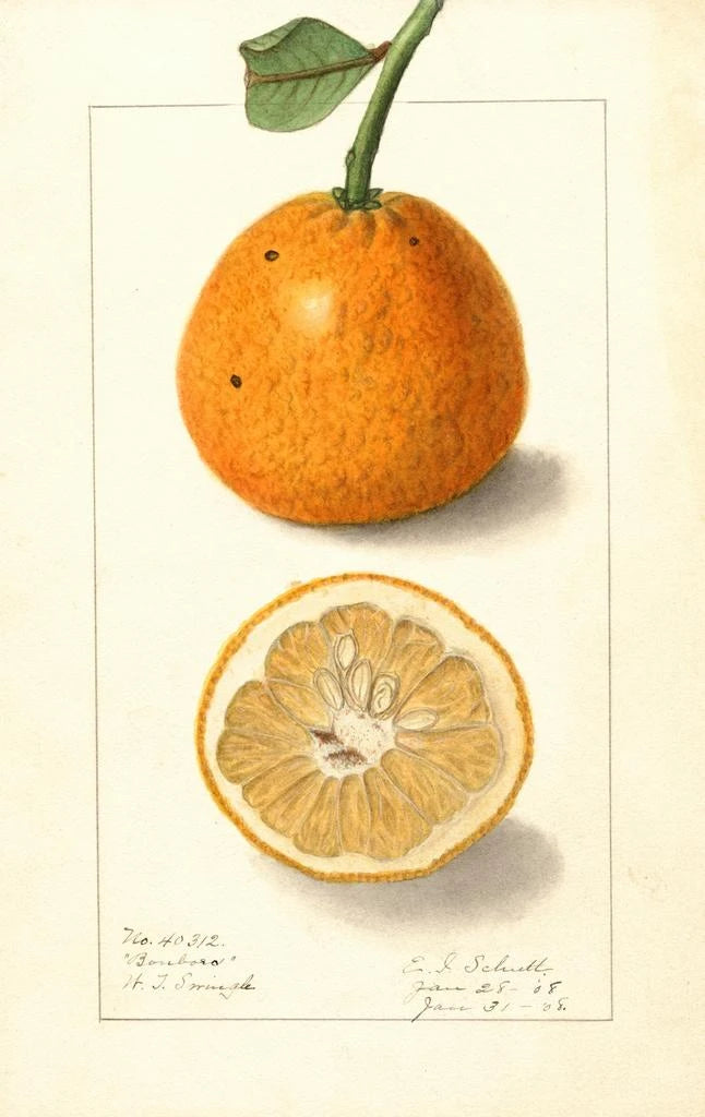 Ellen Isham Schutt, aktiv i slutningen af 1800-tallet, markerede sin tid med sin unikke tilgang til botanisk kunst. Påvirket af den naturalistiske bevægelse formåede hun at forene videnskab og æstetik, hvilket resulterede i troværdige gengivelser af planter og frugter. Hendes passion for naturen og hendes opmærksomhed på detaljer gør hende til en pioner inden for dette felt. Schutts værker, herunder Citrus sinensis Bonboro, vidner om hendes engagement i at fange skønheden i den naturlige verden, samtidig med at hun bidrager til udviklingen af botanisk kunst som en anerkendt kunstdisciplin.