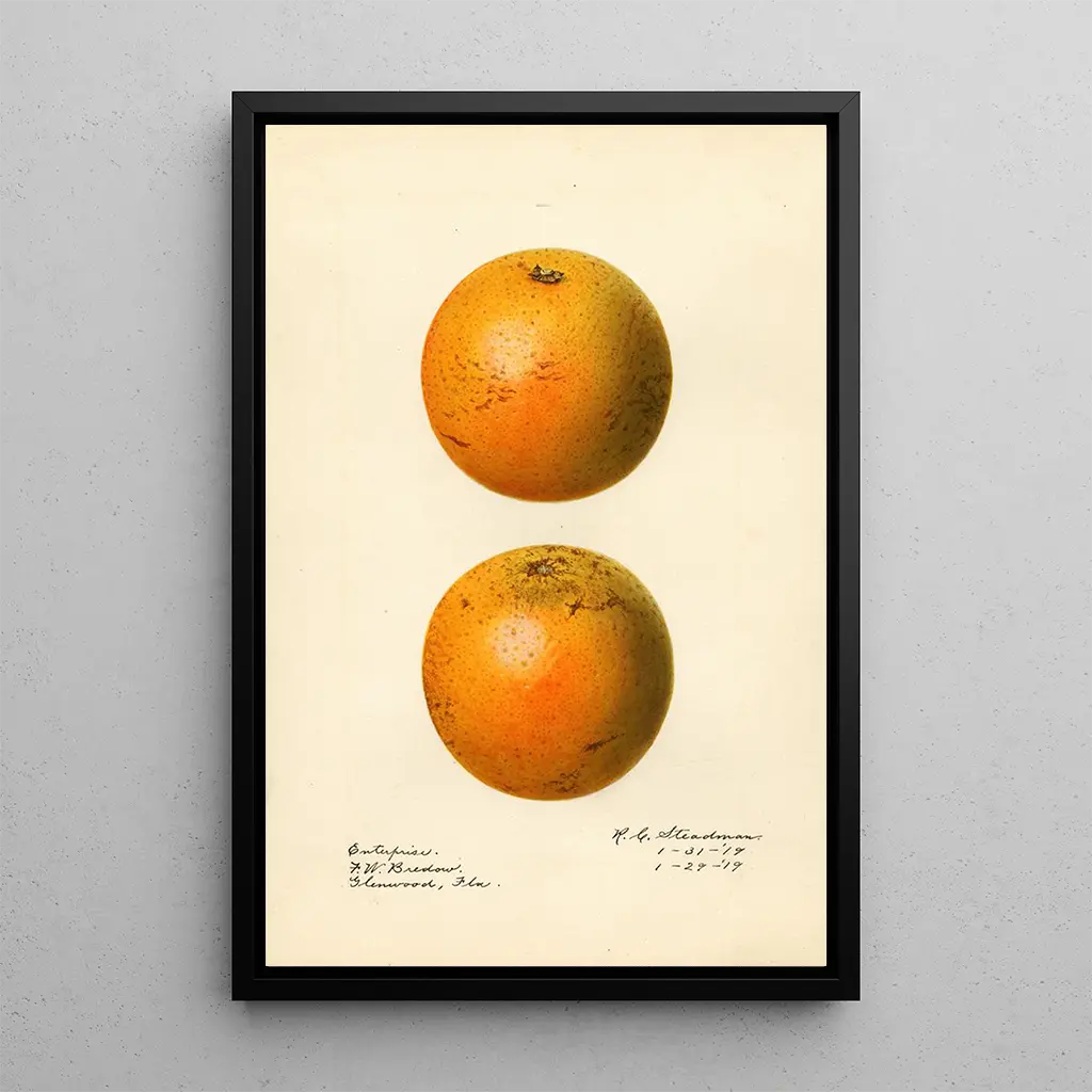 Royal Charles Steadman, aktiv i begyndelsen af det 20. århundrede, formåede at skabe sig et navn med sine imponerende skildringer af naturen, især frugt. Hans stil, forankret i realisme, adskiller sig ved en omhyggelig opmærksomhed på detaljer og en palette af levende farver. I en kunstnerisk kontekst, hvor naturen blev hyldet, formåede Steadman at fange essensen af frugterne, hvilket gjorde hvert maleri til et ægte kunstværk. Citrus sinensis Enterprise er et perfekt eksempel på hans evne til at indfange skønheden i naturlige elementer.