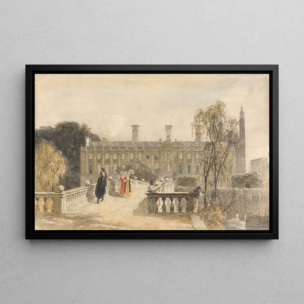 Grundlagt i 1326 er Clare College et af de ældste kollegier ved University of Cambridge. Dets arkitektur, der kombinerer gotiske og neoklassiske stilarter, vidner om udviklingen af kunstneriske strømninger gennem århundrederne. Influencer fra middelalderens arkitektur blandes med mere moderne elementer, hvilket skaber en sammenhængende og majestætisk helhed. Dette sted har set mange indflydelsesrige tænkere og kunstnere passere forbi, hvilket bidrager til dets ry for excellence. Fremstillingen af Clare College i kunsten understreger ikke kun dets historiske betydning, men også dets rolle i den britiske akademiske kultur, hvilket gør dette kunsttryk til en hyldest til en levende arv.