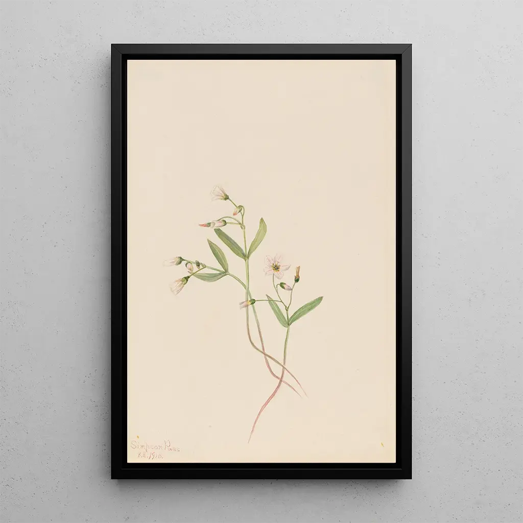 Mary Vaux Walcott, aktiv i begyndelsen af det 20. århundrede, er en ikonisk figur inden for amerikansk botanisk kunst. Påvirket af den naturalistiske bevægelse har hun viet sit liv til studiet og fremstillingen af indfødte planter i Nordamerika. Hendes arbejde, ofte udført ude i felten, vidner om en passion for videnskabelig præcision og æstetik. Som medlem af det amerikanske botaniske selskab har Walcott bidraget til at øge bevidstheden om biodiversitet og bevaring af arter. Hendes værker, som dette kunsttryk af Claytonie de printemps, er ikke kun kunstneriske, men også uddannelsesmæssige, og fejrer den amerikanske flora’s rigdom.
