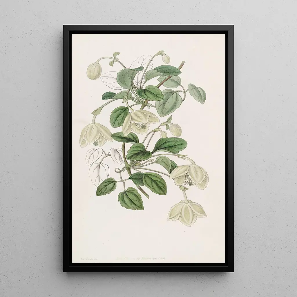 Kunsttrykket af Clématite vierge de Majorque à longues tiges fordyber os i en delikat botanisk verden, hvor nuancer af grønt blander sig med strejf af violet og hvid. Dette værk, skabt med omhu og præcision, fremhæver den naturlige skønhed af denne plante og fremkalder en rolig og beroligende atmosfære. De lange stængler, slanke og yndefulde, synes at strække sig mod himlen, mens blomsterne, strålende og raffinerede, fanger lyset på en næsten magisk måde. Akvarelteknikken, anvendt af Sydenham Edwards, giver dette lærred en lethed og en flydende kvalitet, der inviterer til eftertanke.