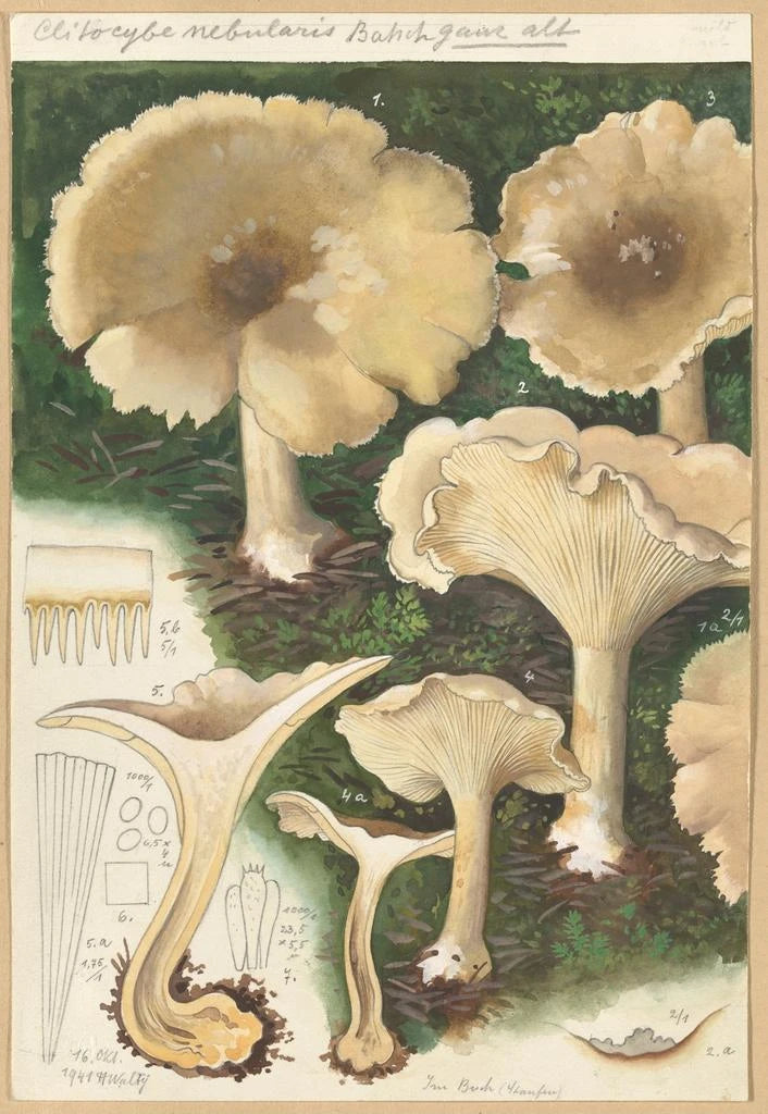 Hans Baldung, en ikonisk skikkelse fra den tyske renæssance, formåede at præge sin tid med sin unikke stil og dristige temaer. Aktiv i det XVI. århundrede, blev han påvirket af de store mestre fra sin tid, især Albrecht Dürer. Baldung skiller sig ud ved sin evne til at fusionere kunst og videnskab, og udforske emner fra mytologi til botanik. Kunsttrykket af Clitocybe nébuleux illustrerer perfekt denne overgangsperiode mod en mere naturalistisk kunst, hvor nøje observation af naturen bliver essentiel for kunstnerne.