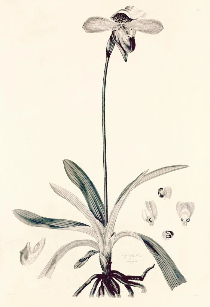 Kunsttrykket af Collectanea botanica Pl32 tager os med til en frodig have, hvor hver plante er omhyggeligt fremhævet. De livlige farver og de fine detaljer fanger essensen af den eksotiske flora og skaber en livlig og energisk atmosfære. John Lindleys graveringsteknik hylder mangfoldigheden af arter, samtidig med at den giver en kunstnerisk fortolkning af botanikken. Dette værk inviterer til opdagelse og forundring, hvor hvert blik åbner for nye udforskninger af naturens vidundere.