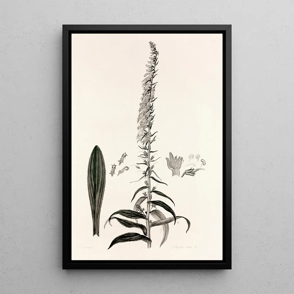 Kunsttrykket af Collectanea botanica Pl35 tager os med ind i en verden, hvor botanik blandes med kunst. De fine illustrationer af blomster, udført med omhu og præcision, afslører en palette af livlige farver, der spænder fra strålende rosa til beroligende blå nuancer. Hvert eneste detalje, fra kronblade til blade, er gengivet med en sådan finesse, at man næsten kan fornemme deres duft. Den graveringsteknik, kunstneren anvender, skaber en atmosfære af ro og forundring, og inviterer betragteren til en omhyggelig betragning af den naturlige skønhed.