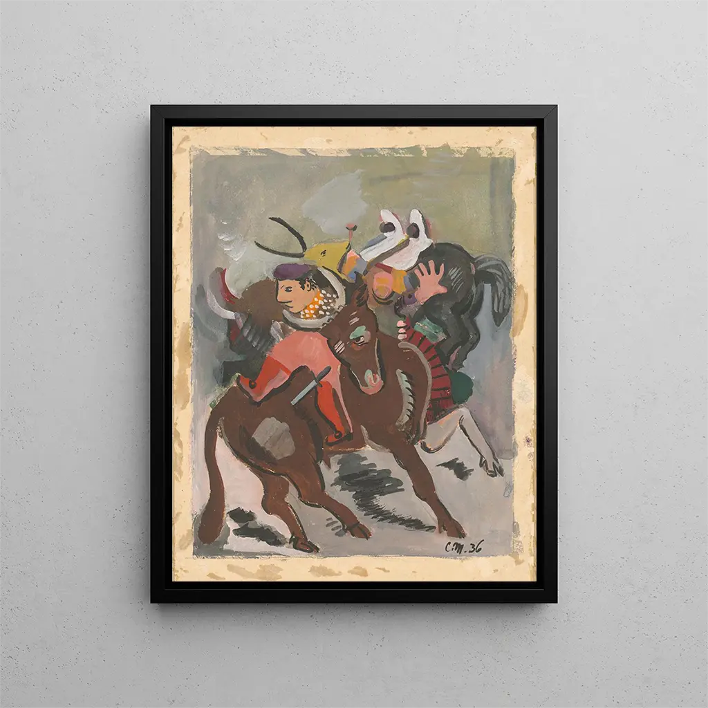 L lærred "Corrida" af Cyprian Majernik fanger selve essensen af passion og drama, og indkapsler en scene, hvor kunsten at tyrefægtning blandes med en slående æstetisk fremstilling. I dette værk formår kunstneren at transcendere det simple spectacle af en corrida for at skabe en ægte hyldest til livet, døden og modet. De levende farver og de dynamiske bevægelser hos figurerne fordyber seeren i en verden, hvor hvert penselstrøg fortæller en historie, og hvor den mærkbare spænding mellem tyrefægteren og tyren afspejles i ansigterne på protagonisterne. Langt fra blot en simpel gengivelse inviterer dette værk til refleksion over kompleksiteten af menneskelige følelser og den tragiske skønhed i kampen.
