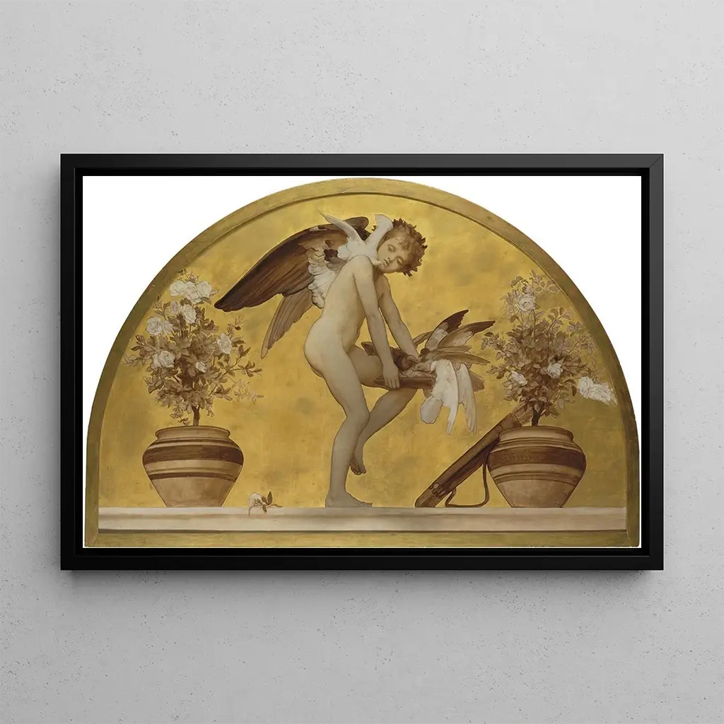 I dette fængslende kunsttryk, Cupidon og due, d. Frédéric Leighton, fører os ind i en verden, hvor kærlighed og fred mødes. Den delikate komposition fremhæver den berømte kærlighedsgud, afbildet med en uendelig ynde, omgivet af duer, der symboliserer fred. Pastelfarverne, bløde og harmoniske, skaber en rolig og beroligende atmosfære. Leightons teknik, der kombinerer realisme og idealisering, giver liv til hver detalje, fra duefjerene til de fine træk af Cupidon. Dette kunsttryk inviterer til eftertanke og flugt, og tilbyder en poetisk vision af kærlighed.