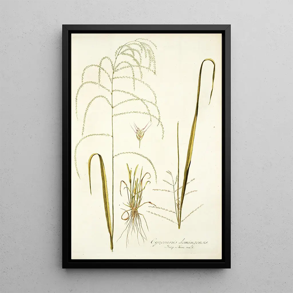 Cynosurus domingensis : en fordybelse i den florale mangfoldighed Kunsttrykket af Cynosurus domingensis fremkalder den tropiske flora's rigdom. Dette maleri, med sine livlige nuancer og dynamiske former, indfanger essensen af denne ikoniske plante. Nuancerne af grøn, gul og blå blander sig harmonisk, hvilket skaber en komposition, der tiltrækker opmærksomhed og stimulerer fantasien. Den anvendte teknik, der kombinerer akvarel og tegning, giver en unik tekstur, der bringer hver detalje til live og giver beskueren mulighed for at føle naturens vitalitet. Nikolaus Joseph Freiherr von Jacquin : en kunstner med videnskaben i fokus Nikolaus Joseph Freiherr von Jacquin, en ikonisk skikkelse fra det 18. århundrede, formåede at forene kunst og videnskab gennem sine botaniske illustrationer. En utrættelig rejsende, han bragte mange plantearter fra Amerika, hvilket berigede den botaniske viden i sin tid. Hans værker, herunder dette kunsttryk af Cynosurus domingensis, afspejler hans ekspertise og passion for naturen. Jacquin har ikke blot dokumenteret planterne, men også inspireret generationer af kunstnere og videnskabsfolk, hvilket styrker hans arv inden for botanisk kunst. En dekorativ tilføjelse med mange fordele At vælge et kunsttryk af Cynosurus domingensis til din indretning er en fremragende idé. Dette maleri passer perfekt ind i forskellige rum, uanset om det er stue, kontor eller soveværelse. Det høje trykkvalitet sikrer en bemærkelsesværdig trofasthed over for de originale værker, samtidig med at det tilføjer farve og liv til dit miljø. Ved at tilføje dette lærred til din samling skaber du et indbydende og inspirerende rum, hvor kunst og natur mødes i harmoni.