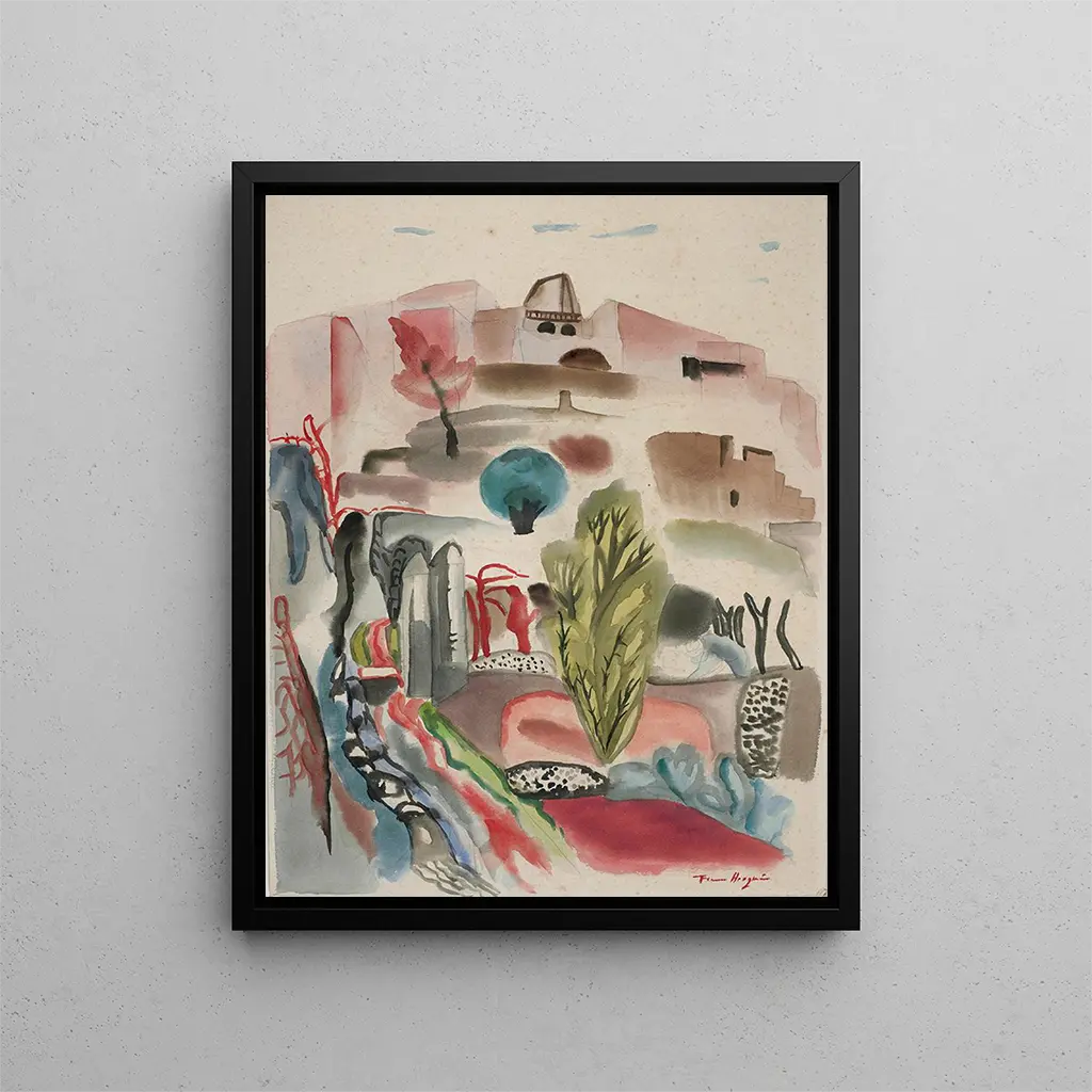 Lærredet "Colline aux cyprès" af Frances Hodgkins inviterer til en fordybelse i et levende landskab, hvor naturen afslører sig gennem en prisme af følelser og farver. Dette værk, emblem på modernistbevægelsen, fremkalder en dialog mellem kunstneren og den verden, der omgiver hende, en verden hvor cypresserne, majestætiske og elegante, synes at danse med vinden. Attraktionen ved dette kunsttryk ligger i dets evne til at fange selve essensen af lys og atmosfære, og tilbyde seeren en transcendent visuel oplevelse. Hvert penselstrøg, hver nuance af grønt og blåt fortæller en historie om ro og eftertanke, og transporterer betragteren mod fjerne horisonter, hvor tiden synes ophævet.