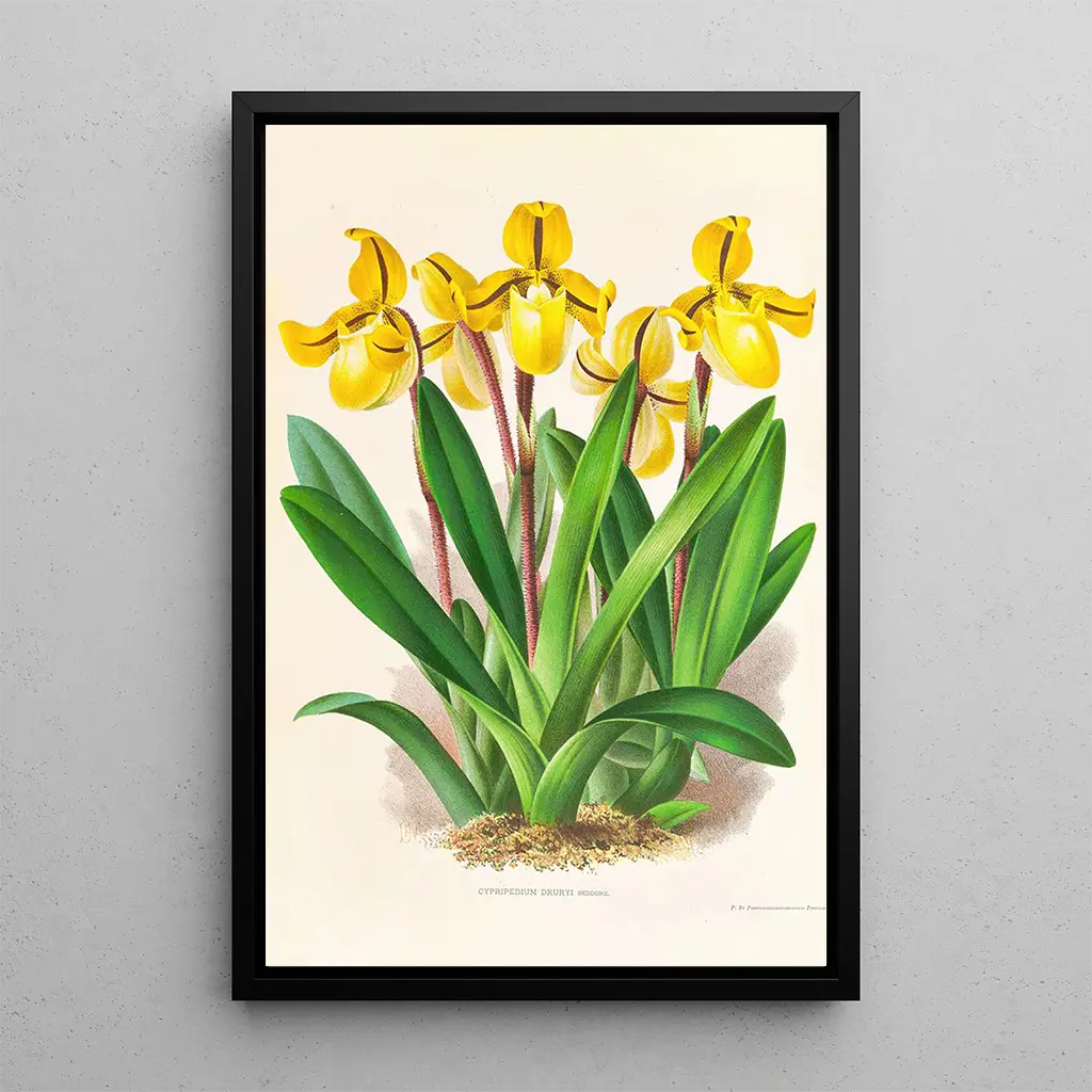 Kunsttrykket af "Cypripedium Druryi" er et ideelt dekorativt stykke til at forskønne forskellige rum, uanset om det er en stue, et kontor eller et soveværelse. Dets trykkvalitet sikrer en trofast gengivelse af farver og detaljer fra det originale værk, hvilket giver mulighed for at nyde hele den visuelle rigdom af dette værk. Ved at integrere dette lærred i dit hjem bringer du et strejf af natur og elegance, samtidig med at du skaber samtaler om kunst og botanik. Dette maleri, med sin ubestridelige æstetiske tiltrækningskraft, vil appellere til kunst- og blomsterentusiaster og gøre hvert blik til et øjeblik af betragning.