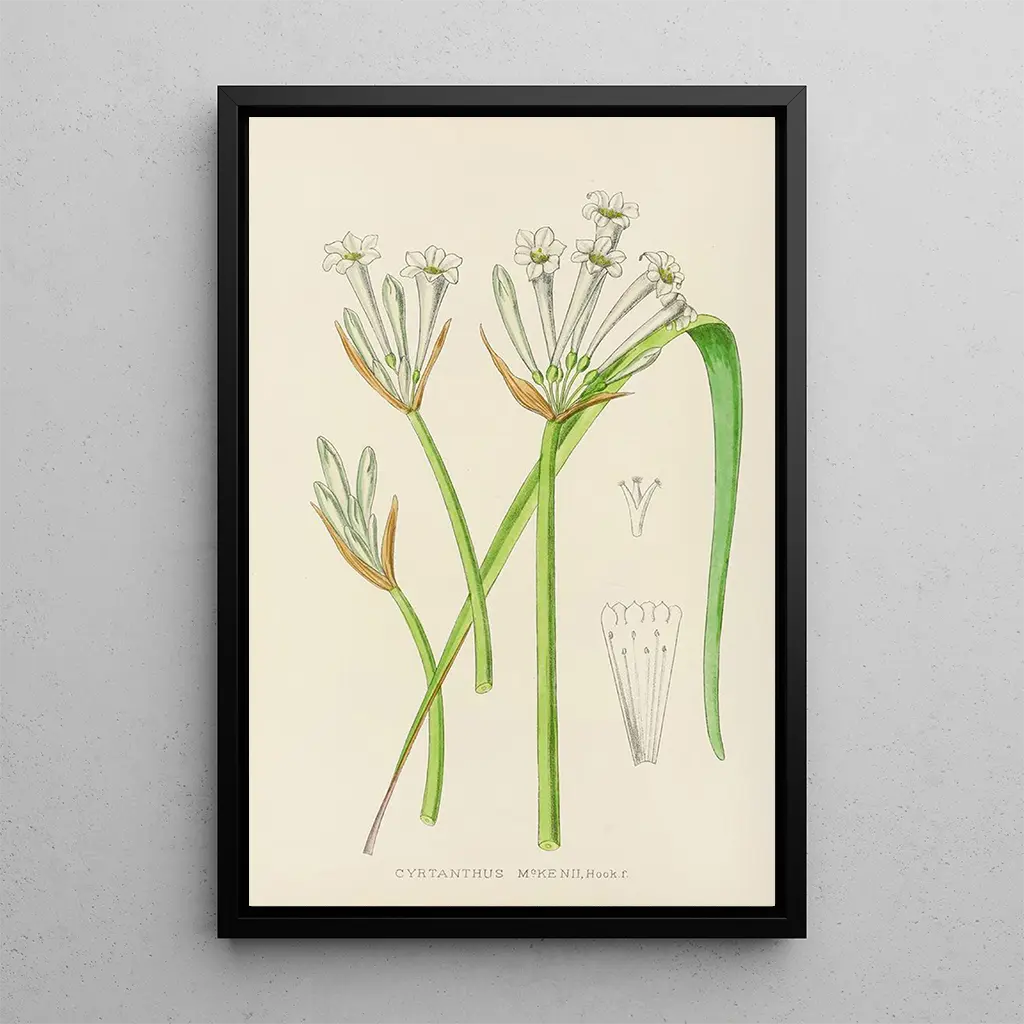 Kunsttrykket af 'Cyrtanthus mckenii' er en værdifuld tilføjelse til enhver kunstsamling. Uanset om det er i et opholdsrum, et kontor eller et soveværelse, tilføjer dette lærred et strejf af farve og elegance. Dets trykkvalitet sikrer en trofast gengivelse af detaljerne i det originale værk, hvilket gør det muligt fuldt ud at værdsætte hver blomst. Ved at vælge dette kunsttryk beriger du din indretning, samtidig med at du skaber en varm og indbydende atmosfære, perfekt til eftertanke og inspiration.