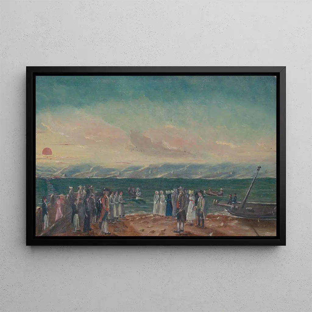 I denne kunsttryk af Dåben tager William P. Chappel os med ind i en atmosfære præget af ro og spiritualitet. Kompositionen fremhæver en central scene, hvor vand og lys spiller en afgørende rolle, og skaber en glorie omkring de hellige figurer. De bløde farver, domineret af pastelnuancer, fremkalder en indre fred og en guddommelig forbindelse. Chappels teknik, der kombinerer realisme med impressionistiske strejf, giver værket en følelsesmæssig dybde, hvilket gør hvert blik på dette lærred til en invitation til eftertanke og refleksion over troen.