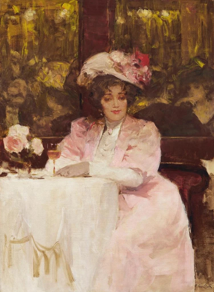 Kunsttryk | Dame i en café - Victor Guerrier