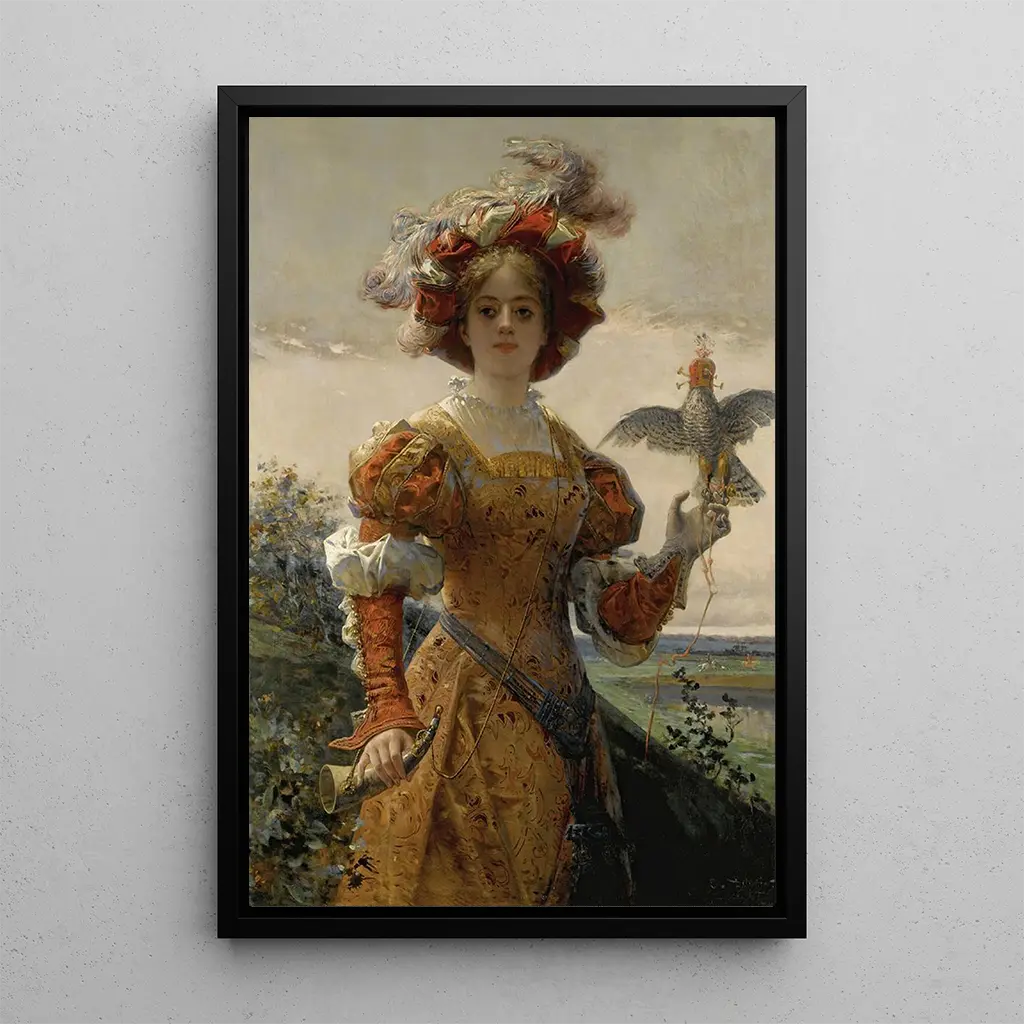 Kunsttrykket af "Dame med falcon" er et dekorativt stykke, der vil berige ethvert rum, uanset om det er en stue, et kontor eller et soveværelse. Dets trykkvalitet og trofasthed mod det originale værk sikrer enestående æstetisk fremstilling. Dette maleri tiltrækker opmærksomhed og skaber samtaler, hvilket tilføjer et strejf af elegance og mystik til din indretning. Ved at vælge dette lærred går du efter et dekorativt element, der kombinerer historie, kunst og sofistikation, samtidig med at det bringer en varm og indbydende atmosfære ind i dit hjem.