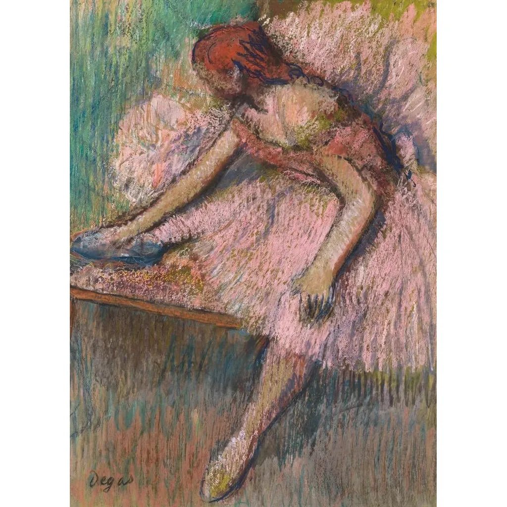 Kunsttrykket af "Danseuse rose" af Edgar Degas fremkalder et ophængt øjeblik i tiden, hvor danseren, klædt i en fin tutu, synes at svæve over scenen. Pastelfarverne, domineret af nuancer af rosa og blå, skaber en blid og drømmende atmosfære. Degas' impressionistiske teknik, med sine hurtige penselstrøg og evne til at fange bevægelsen, giver liv til dette værk. Hvert detalje, fra folderne i kostumet til dansernes koncentrerede udtryk, vidner om kunstnerens engagement i skønheden og bevægelsens flydende natur.