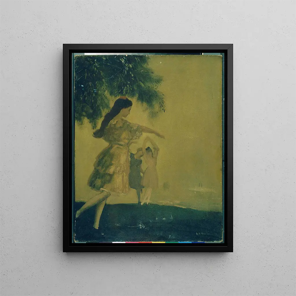 I kunstverdenen, hvor nogle værker formår at fange den helt essentielle følelse af menneskelig emotion, står "Reproduktion Les Danseurs" af Arthur Bowen Davies som et af de mest bemærkelsesværdige. Dette maleri, fyldt med poesi og ynde, skildrer en verden, hvor dansen transcenderer blot bevægelse for at blive en ægte fejring af livet. Figurerne, både eteriske og vibrerende, synes at hæve sig over jorden, som om de er i harmoni med en usynlig musik. Lyset, der bader scenen, skaber en næsten magisk atmosfære, der inviterer seeren til at dykke ned i et univers, hvor tiden står stille, og skønheden hersker. Stil og særpræg ved værket Arthur Bowen Davies' stil er kendetegnet ved en unik tilgang, der blander symbolisme og impressionisme. I "Reproduktion Les Danseurs" formår han at fusionere disse to kunstretninger, hvilket skaber et værk, der ikke blot repræsenterer virkeligheden, men søger at udtrykke dens essens. Farverne, både livlige og delikate, blander sig harmonisk for at skabe en drømmeagtig atmosfære. Figurerne, i en flydende bevægelse, antyder en lethed, der synes at udfordre tyngdekraften. Denne stilistiske valgmulighed giver Davies mulighed for at formidle en følelse af evig bevægelse, som om figurerne er på nippet til at springe ud i en evig dans. Evnen til at fange bevægelse og følelser gør "Reproduktion Les Danseurs" til et værk med stor dybde og sjælden skønhed. Kunstneren og hans indflydelse Arthur Bowen Davies, amerikansk kunstner fra begyndelsen af det 20. århundrede, betragtes ofte som en pioner inden for symbolistisk maleri. Hans karriere, selvom den var relativt kort, har sat et uudsletteligt præg på kunstverdenen. Davies var dybt påvirket af samtidige bevægelser, men udviklede en stil, der var hans egen, med fokus på natur, mytologi og spiritualitet. "Reproduktion Les Danseurs" illustrerer perfekt denne søgen efter en transcendent skønhed, hvor kunsten bliver et middel til at udforske de dybeste dimensioner af den menneskelige oplevelse. Hans indflydelse kan mærkes hos mange efterfølgende kunstnere, og