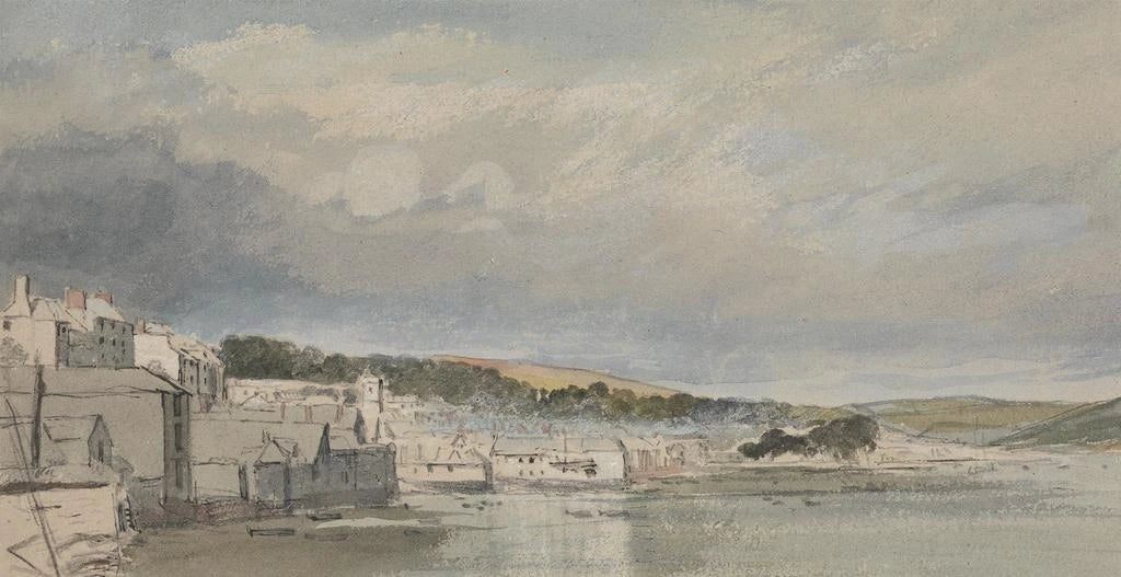 I dette værk tager William Collins os med til Dartmouth, en malerisk havn hvor lyset leger med vandets refleksioner. Nuancer af blå og grøn blander sig harmonisk, hvilket skaber en beroligende atmosfære. Teknikken med oliemaling gør det muligt at fange detaljerne i de hvide sejl på bådene, samtidig med at den giver en rig tekstur, der tiltrækker opmærksomhed. Skyerne, omhyggeligt malet, tilføjer en poetisk dimension til denne maritime scene, og inviterer betragteren til at fordybe sig i landskabets fredelige stemning.