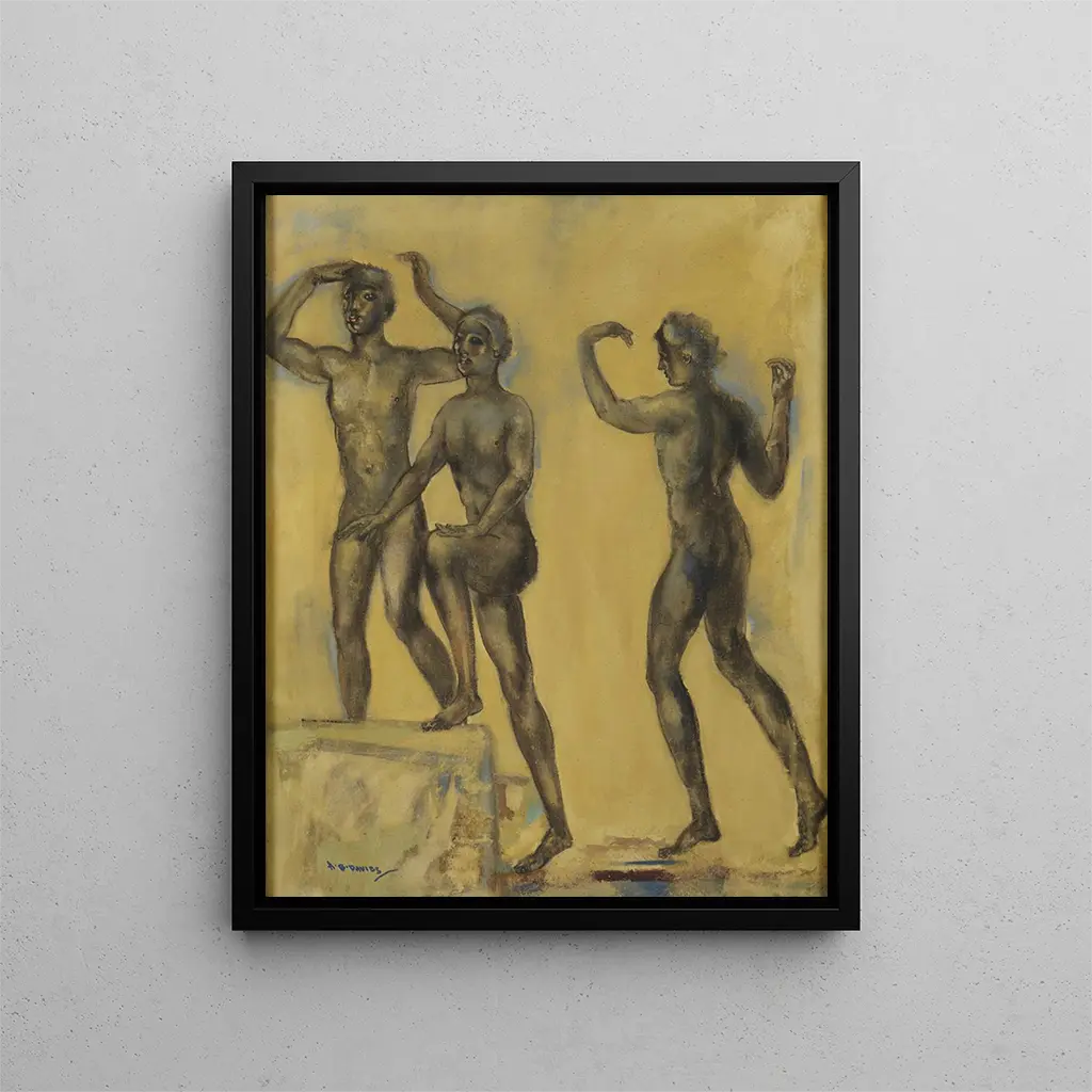 Reproduktion Les Sources de Daystar - Arthur Bowen Davies – Introduktion fængslende L'œuvre "Les Sources de Daystar" af Arthur Bowen Davies fremstår som en invitation til en sensorisk rejse i hjertet af naturen og fantasien. Dette lærred, der fremkalder en verden både mystisk og poetisk, transporterer betragteren til et univers, hvor lyset spiller en afgørende rolle. De levende farver og de organiske former blandes harmonisk, hvilket skaber en fortryllende atmosfære, der fanger opmærksomheden allerede ved første blik. Szenen skildrer kvindelige figurer, symboler på skønhed og vitalitet, som synes at stige op af floderne fra en lysende kilde, hvilket afslører jagten på harmoni mellem mennesket og naturen. Dette værk, både komplekst og tilgængeligt, stiller dybe spørgsmål om spiritualitet og forbindelsen mellem mennesket og dets omgivelser. Stil og eneståendehed af værket Arthur Bowen Davies' stil skiller sig ud gennem en symbolistisk tilgang, der overskrider den enkle billedlige repræsentation. I "Les Sources de Daystar" bruger kunstneren flydende linjer og delikate konturer til at forme eteriske silhuetter, hvilket skaber en følelse af lethed. Farvepaletten, domineret af varme og gyldne nuancer, giver lærredet en næsten guddommelig lysstyrke, der fremkalder magien i skumringens øjeblikke. De naturlige elementer, såsom vand og lys, er integreret på en måde, der antyder en dialog mellem det synlige og det usynlige, mellem det håndgribelige og det mystiske. Hvert detalje, hvad enten det er refleksionerne i vandet eller de yndefulde bevægelser af figurerne, er omhyggeligt orkestreret for at styrke budskabet om fællesskab med naturen. Denne stilistiske eneståendehed gør værket til et ikonisk eksempel på den kunstneriske drejning i begyndelsen af det 20. århundrede, hvor udtrykket for følelser og åndelige ideer tager over for realistisk repræsentation. Kunstneren og hans indflydelse Arthur Bowen Davies, en ikonisk skikkelse inden for amerikansk kunst, formåede at forene sine europæiske påvirkninger med en følsomhed, der var unik for hans tid. Opvokset i et rigt kunstnerisk miljø, blev han påvirket af symbolistiske og impressionistiske strømninger, der prægedes af hans æra. Hans værk, præget af en søgen efter spiritualitet og en fascination af myter, havde en betydelig indflydelse