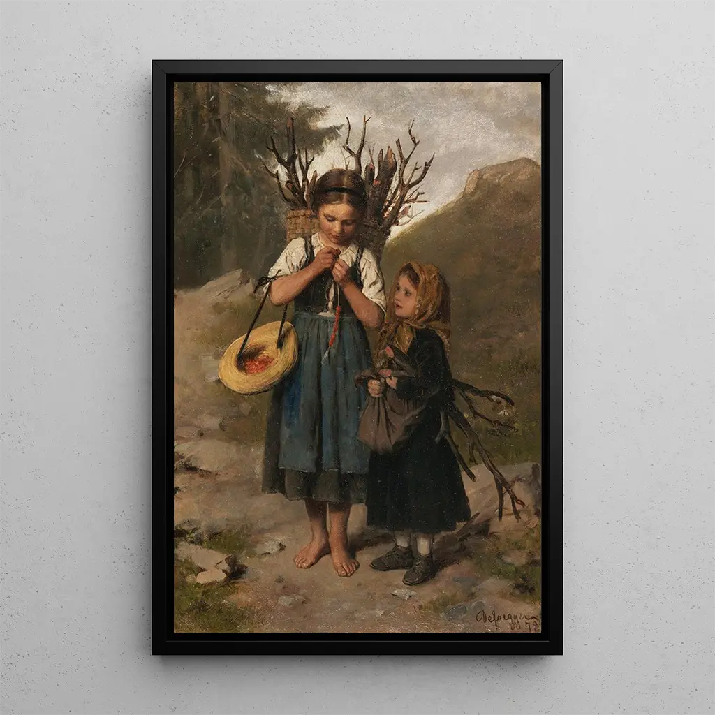 Kunsttrykket af de små træindsamlere er en charmerende tilføjelse til din indretning, hvad enten det er i en stue, et værelse eller et arbejdsrum. Dets trykkekvalitet og respekt for de originale detaljer gør det til et fængslende kunstværk, der fanger øjet. Dette kunsttryk, med sit budskab om uskyld og arbejde, bringer en varm og indbydende atmosfære til dit rum. Ved at vælge dette lærred beriger du dit miljø med et værk, der fremkalder skønheden i barndommen og enkelheden i det landlige liv.