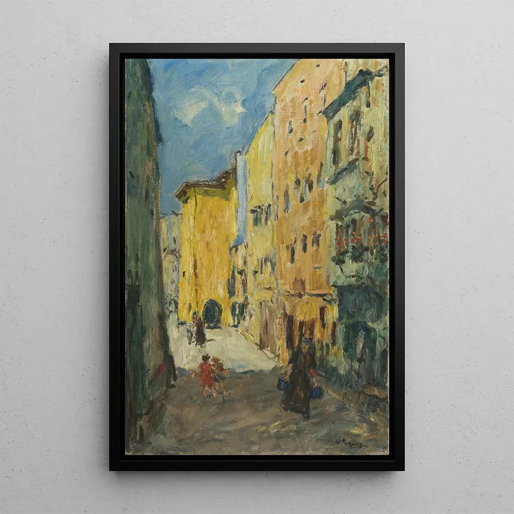 De Wasserburg am Inn, et kunsttryk af Hermann Schlittgen, skildrer et fredeligt landskab, hvor natur og arkitektur mødes i harmoni. Lærredet viser en malerisk udsigt over byen Wasserburg, med dens historiske bygninger langs floden Inn. De bløde farver og nuancer af grøn og blå skaber en rolig atmosfære, mens lyset leger over overfladerne og tilføjer en næsten magisk dimension til scenen. Dette kunsttryk inviterer til visuel flugt, og transporterer betragteren til et øjeblik af fred og naturlig skønhed.