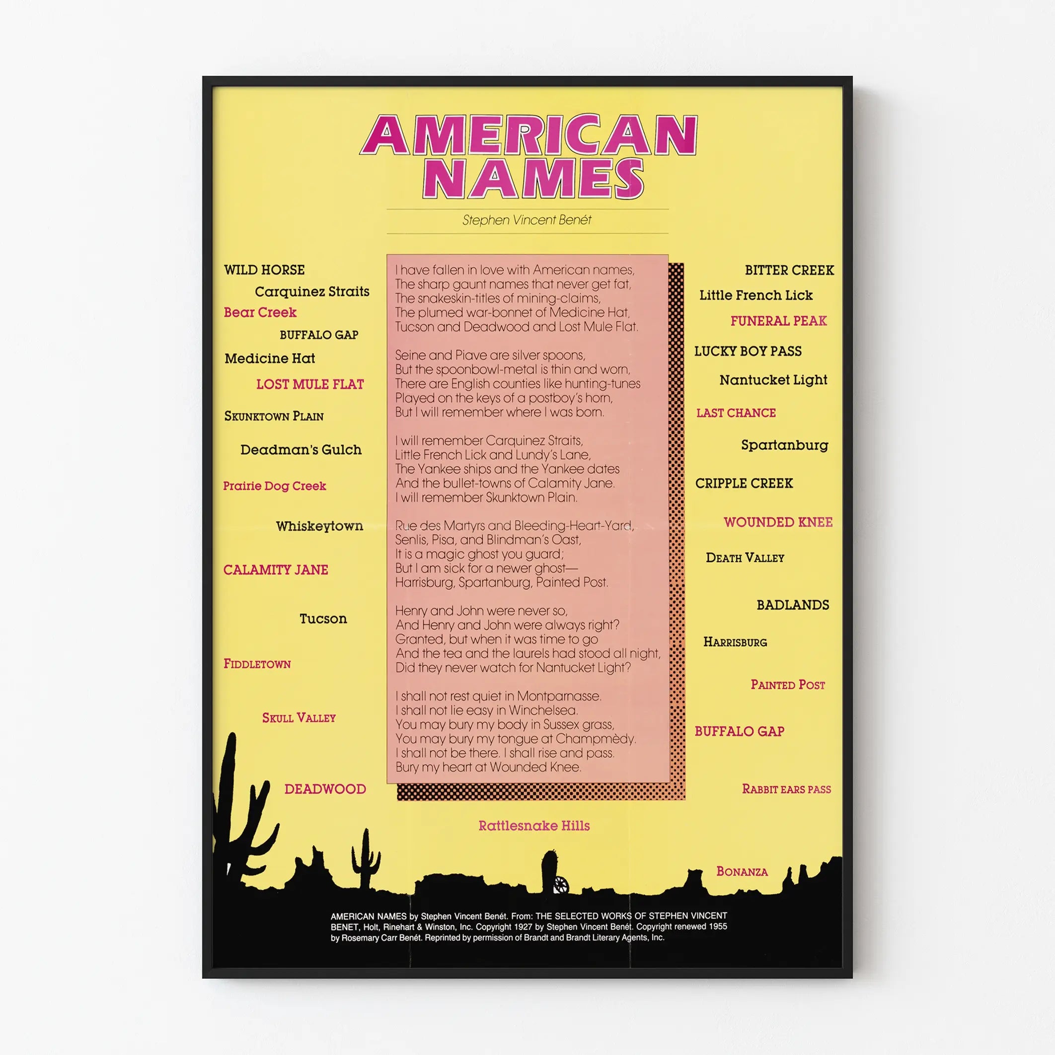 Dekorativ plakat American Names af Stephen Vincent Benét