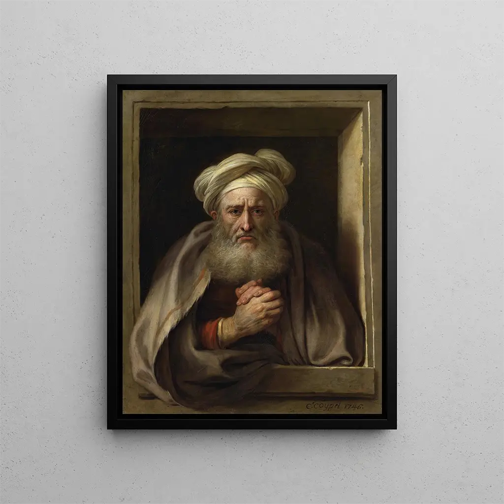 I barokkunstens fascinerende univers skiller kunsttrykket "Démocrite le triste" af Charles-Antoine Coypel sig gennem sin følelsesmæssige dybde og sin rørende skildring af den antikke filosofi. Dette maleri, der illustrerer den berømte græske filosof Démocrite, kendt for sin materialistiske vision og sin rationalistiske tilgang til verden, inviterer beskueren til en introspektiv refleksion. Démocrites' tænksomme ansigt, præget af melankoli, synes at transcendere tid og rum og fange selve essensen af den menneskelige tilstand. Gennem dette værk formår Coypel ikke blot at portrættere en historisk figur; han vækker også universelle temaer som sorg, visdom og søgen efter sandhed.